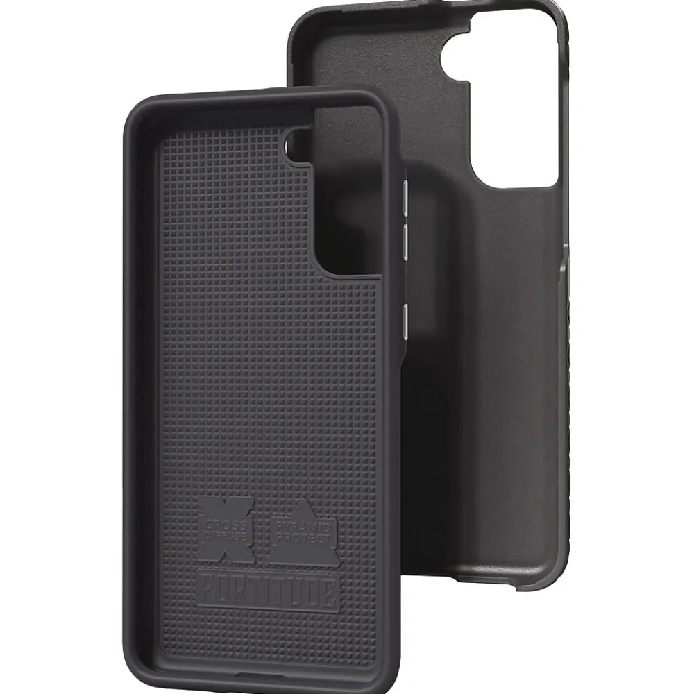 Does your phone have the Fortitude to withstand everyday issues of life? Fortitude Series for Samsung Galaxy S21 5G, 6.2 In. in Onyx Black from cellhelmet can. Built for the ultimate protection with patented Pyramid Protect and Cross Diffuse technology, this super-protective cell phone case is the one you need. This 2-part, dual-layer case features a tough and rugged nylon outer shell, with a cushioned inner shell made of durable TPU (Thermoplastic Polyurethane). This gives the phone case military-grade protection, all while being slim, not bulky, and easy to slide into your pocket or purse. For the ultimate in dual-layer protection technology, attractive design, and slim features, look no further than the Fortitude case, by cellhelmet.