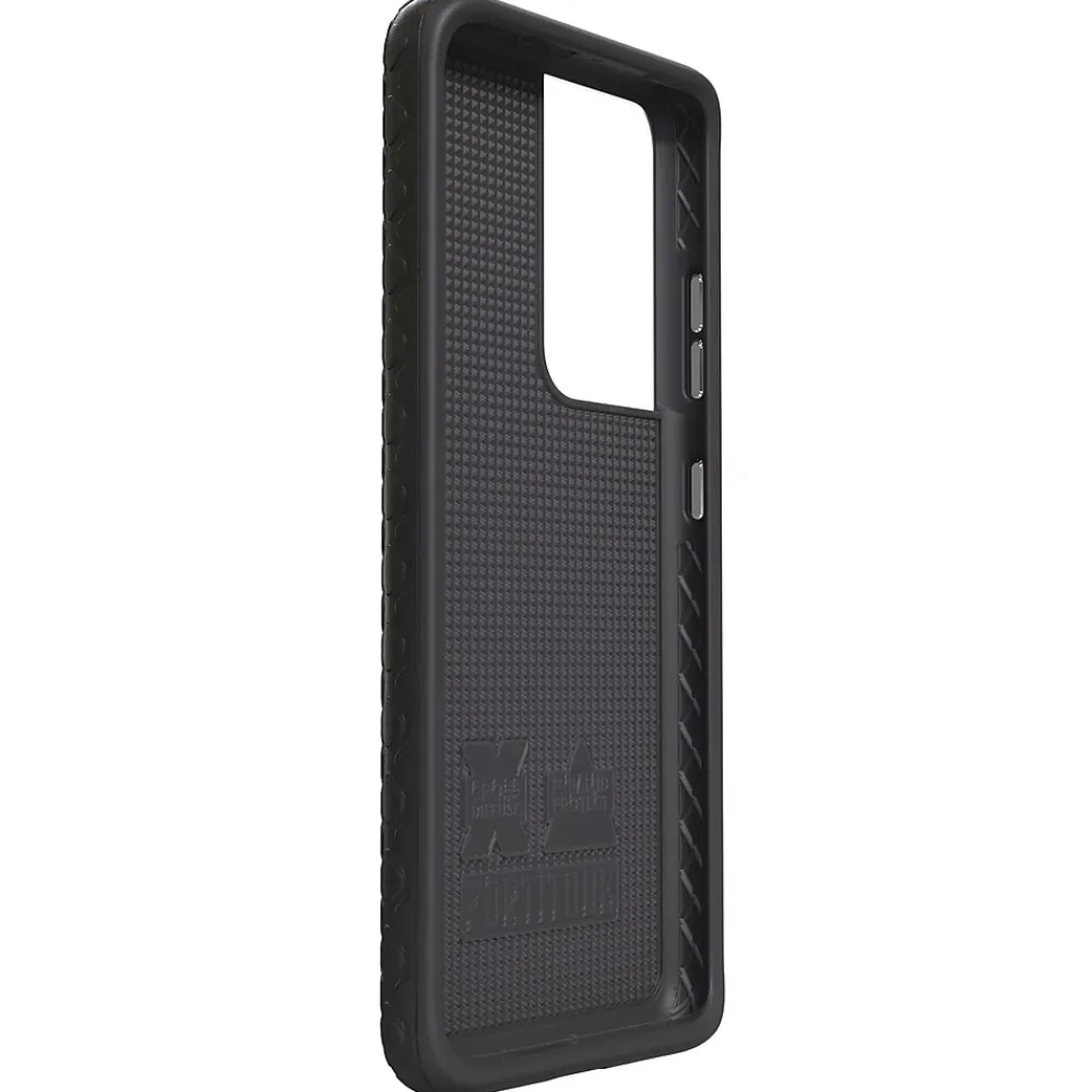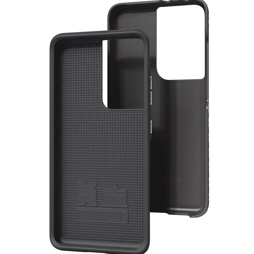 Does your phone have the Fortitude to withstand everyday issues of life? Fortitude Series for Samsung Galaxy S21 Ultra 5G, 6.8 In. in Onyx Black from cellhelmet can. Built for the ultimate protection with patented Pyramid Protect and Cross Diffuse technology, this super-protective cell phone case is the one you need. This 2-part, dual-layer case features a tough and rugged nylon outer shell, with a cushioned inner shell made of durable TPU (Thermoplastic Polyurethane). This gives the phone case military-grade protection, all while being slim, not bulky, and easy to slide into your pocket or purse. For the ultimate in dual-layer protection technology, attractive design, and slim features, look no further than the Fortitude case, by cellhelmet.