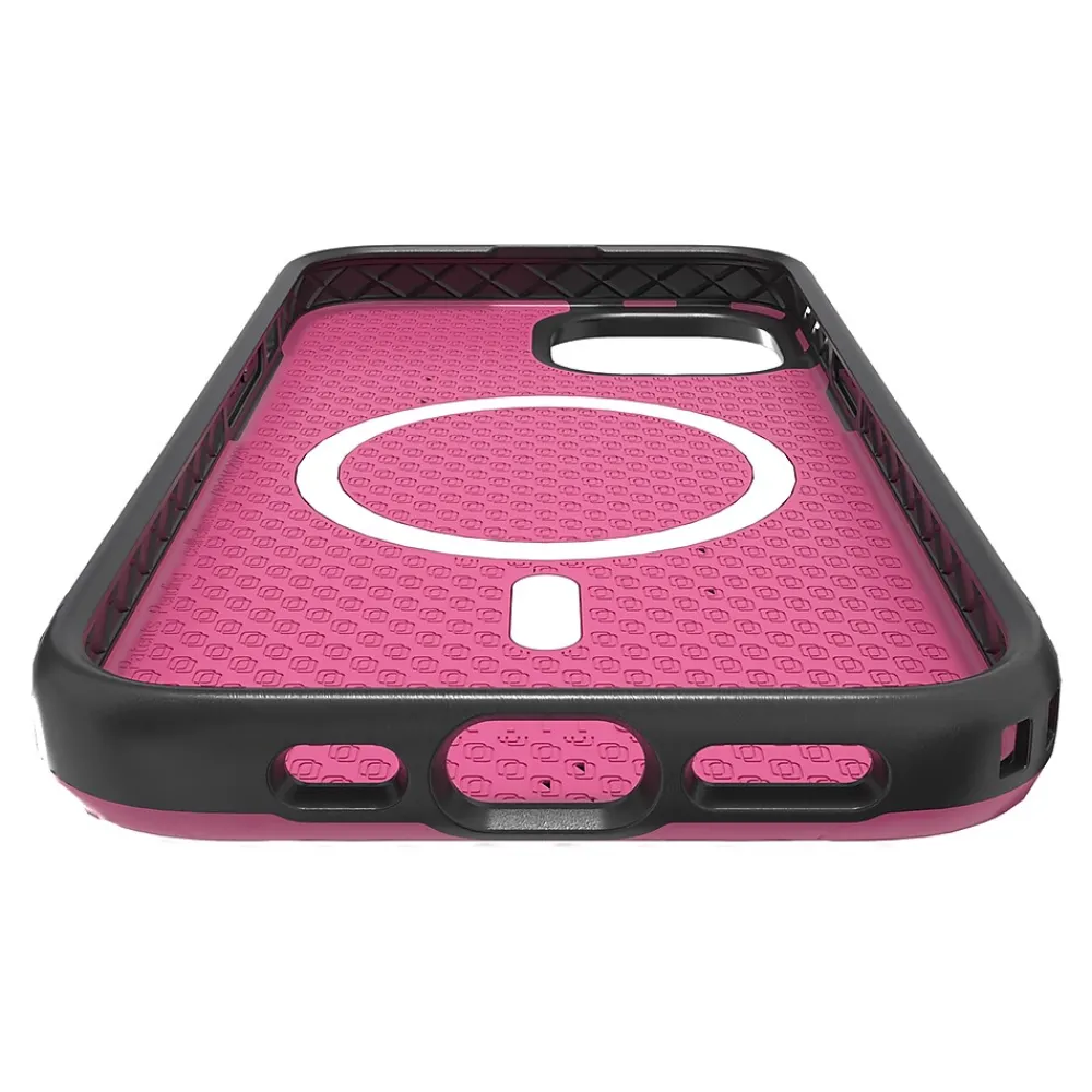 The cellhelmet Vivid Magenta Fortitude Series case for iPhone 15 uses a proprietary co-molded design to deliver a sleek profile, and introduces protective Dynamic Link Technology to double-down on protection. Combine those with a 13-ft. third-party drop-test certification, cellhelmet’s patent-pending Cross Diffuse shock-absorption technology, and an integrated tether hook, and it’s the ideal marriage of protection and utility. To finish things off, it includes built-in MagSafe compatibility for all your quick-attach accessories.