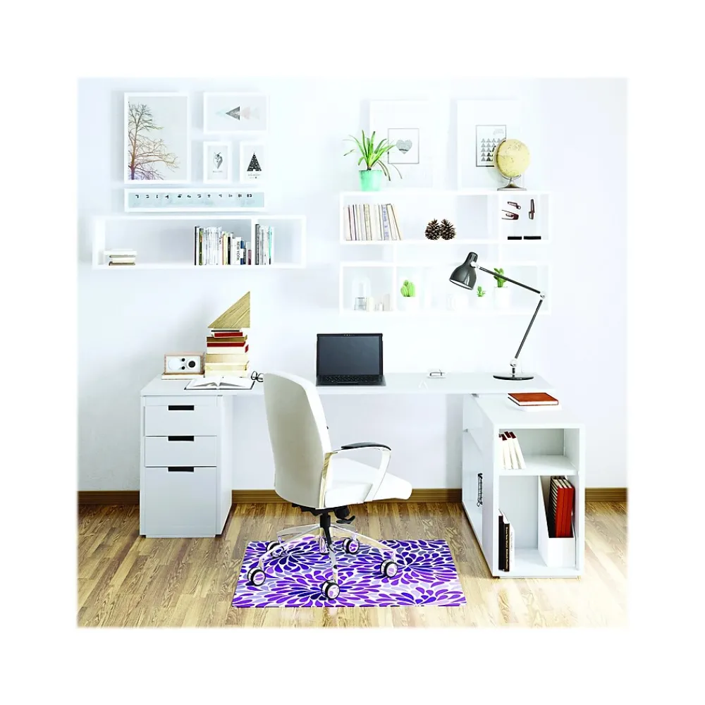 - Protective and easy to glide on, the 0.05″ thick printed laminate vinyl mat is perfect for home, office, classroom, or dorm room use