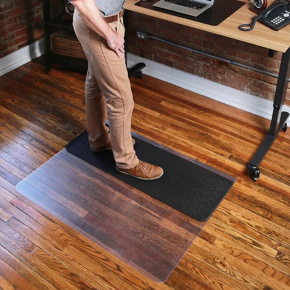 Finally, a chair mat that protects hard floors and promotes an active, healthier workspace. The revolutionary all-in-one Sit or Stand Mat® offers the flexibility to sit or stand. Simply fold for a supportive foam cushion, then unfold for a full-size chair mat. The perfect addition for your sit to stand workspace, this mat provides a smooth rolling surface and antifatigue support to provide comfort throughout your workday. Designed for use on hard floor surfaces only, do not use on carpet.