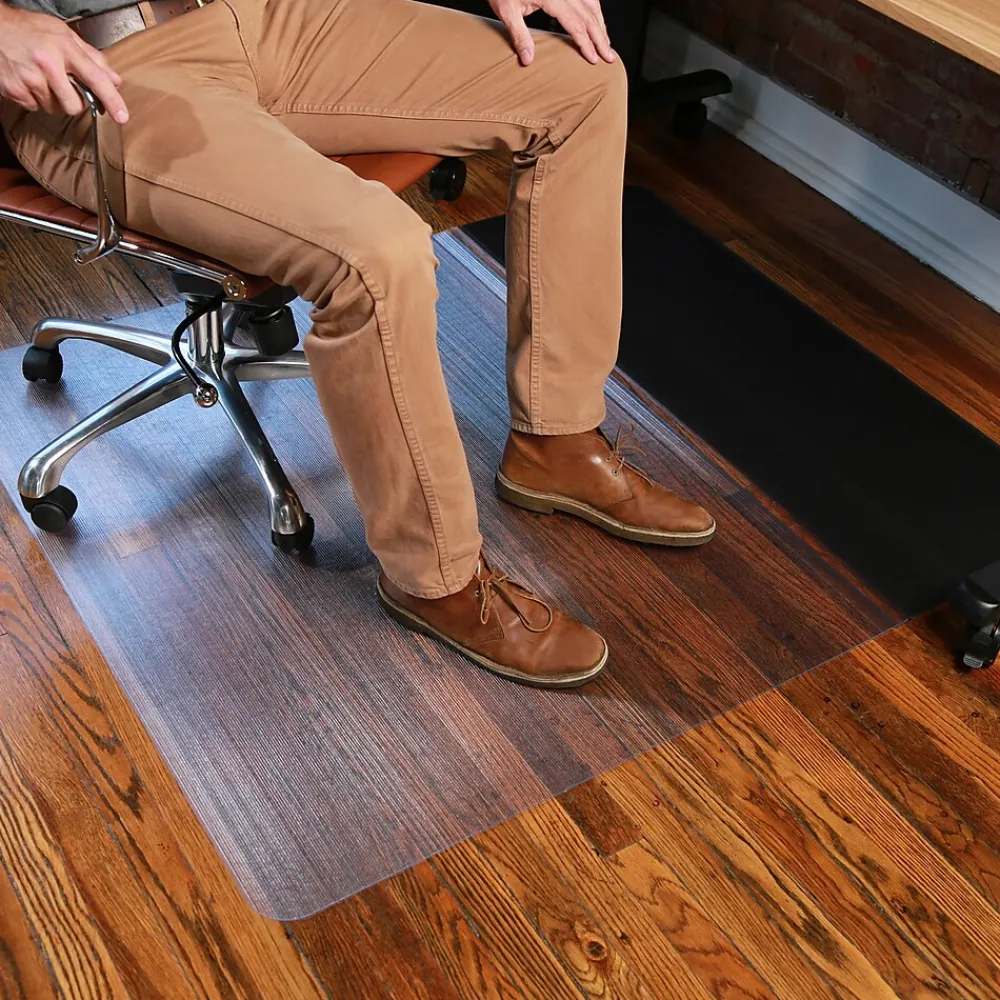 - Protects hard floor surfaces such as laminate, wood, and tile from chair caster wear and tear