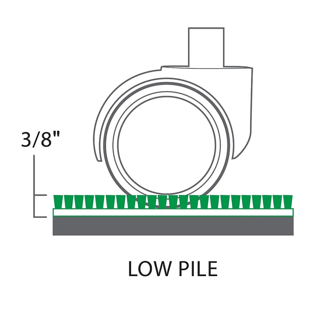 - Protects low pile carpet up to 3/8″ thick (including padding depth) from chair caster wear and tear