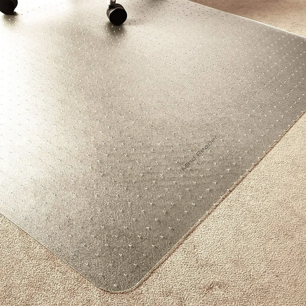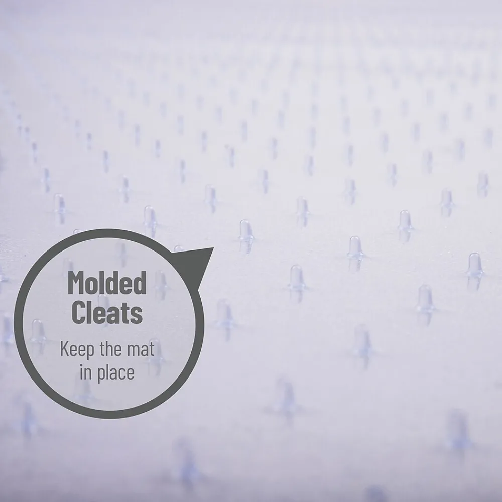 This PVC floor mat not only allows you to move freely in your workspace but also provides you with the comfort you need while working. Specifically designed for low pile carpeting, the mat features molded cleats that ensure it stays in place no matter how much you move around.Crafted from flexible PVC, this office mat boasts durability and longevity. With it, you can say goodbye to the constant need to replace thin, torn, or cracked mats. Maintaining the mat is as simple as wiping it with a soft cloth and mild soap and water.One of the best things about this mat is that it ships flat, meaning it’s ready for immediate use with no assembly required. This durable office mat would make a great gift for anyone who wants to enhance their comfort and productivity in their workspace.