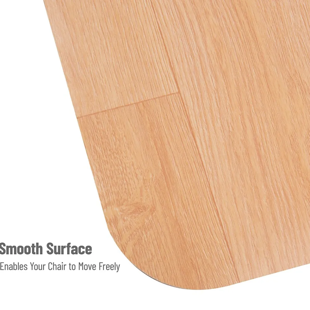 Introduce the perfect combination of style, convenience, and floor protection to your office or home office with this PVC office chair mat. Crafted to make gliding your chair easy and effortless, this mat safeguards your hardwood, tile, laminate, or vinyl flooring from scratches and wear, all while providing the comfort you need while working.Constructed from pliable PVC, this mat offers rugged durability that resists tearing and breaking, sparing you the inconvenience of constantly replacing cracked or worn-out mats. The wood grain design adds a touch of simple yet stylish aesthetic to your workspace.This mat measures a comfortable 47.5 inches long by 35.5 inches wide, making it unobtrusive yet adequately sized for most office spaces. No assembly is required upon delivery, though its flexible nature might require some time to lie flat after unrolling. Expedite the process by rolling it the opposite way a few times or using a blow dryer to soften the plastic. Alternatively, soaking the mat in warm water can help it relax and flatten. Ensure the mat is fully dry before placing it on the floor.