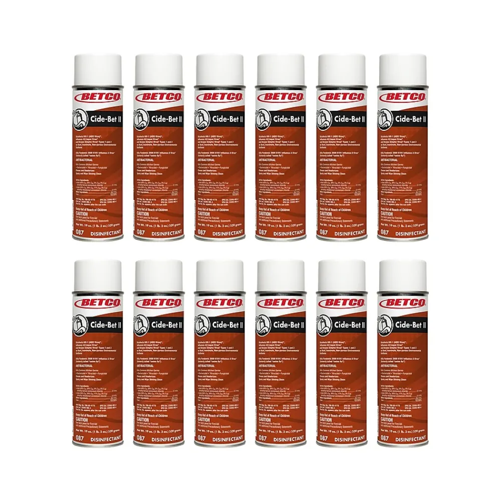 This Betco Cide-Bet II easy-to-use foaming germicidal detergent cleans, disinfects, and deodorizes in one quick operation. A hospital-type disinfectant, this product kills a broad range of microorganisms including staph, salmonella, and pseudomonas. Virucidal against HIV-1 (AIDS virus) and herpes simplex 1 and 2. Effective fungicidal activity against pathogenic fungi, mold, and mildew. Powerful detergent action quickly removes a wide variety of soils and will not harm most surfaces. This product destroys odors at their source, leaving a fresh and clean fragrance behind.