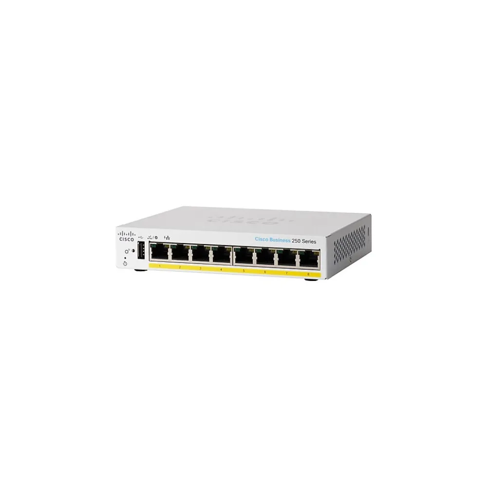 This managed desktop switch features eight Gigabit Ethernet ports that connect to compatible wired devices such as computers, network attached storage, and more. Additionally, this switch can be powered through its 802.3af PoE in port when connected to a compatible device, which can work as a backup to the included AC power adapter.
