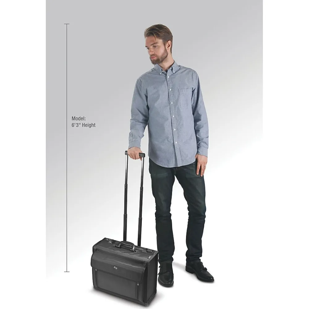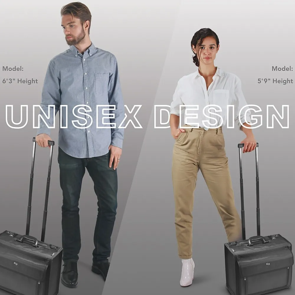 This classic wheeled catalog case has a telescoping handle system and features dual combination locks that can be individually set to keep your laptop and other valuables safe.