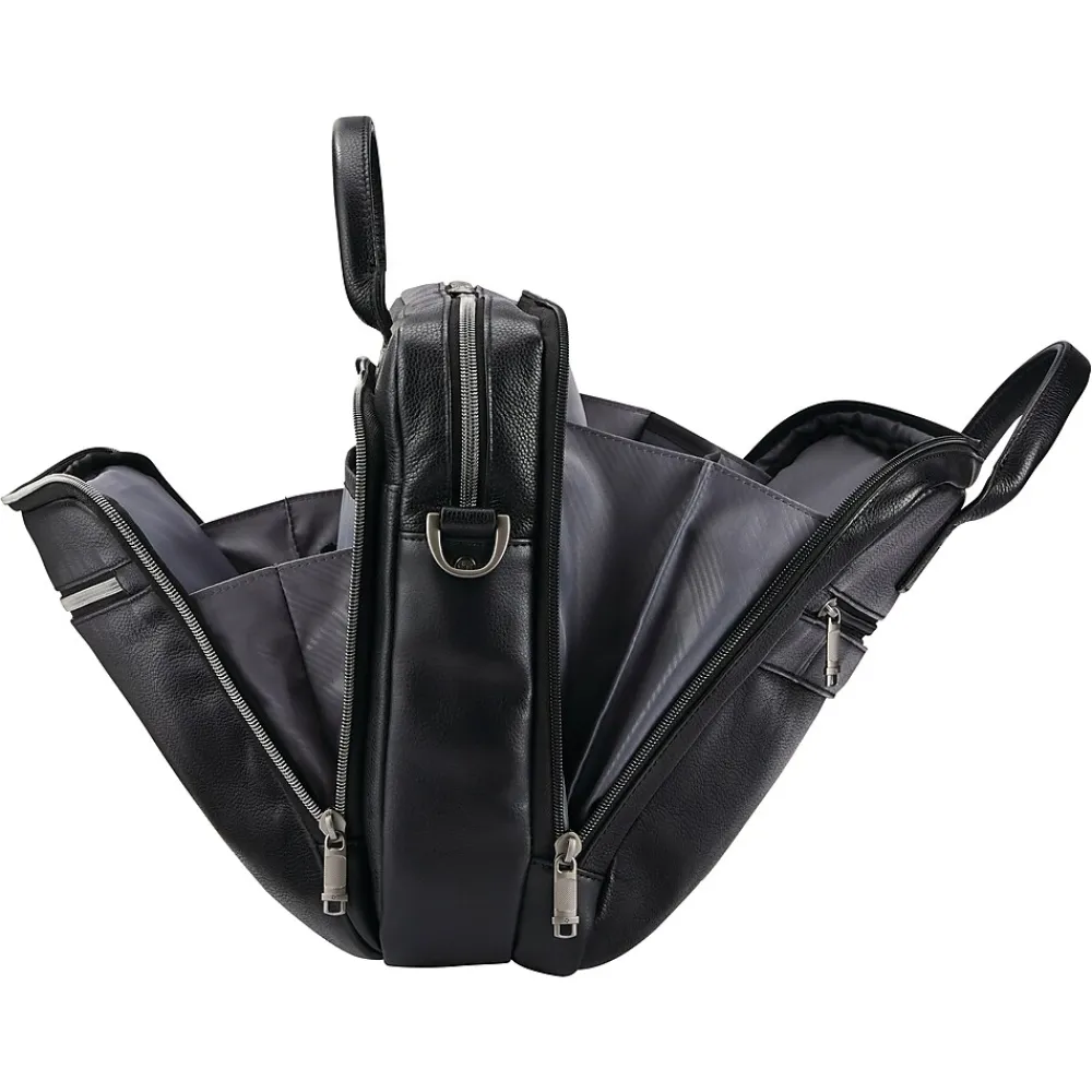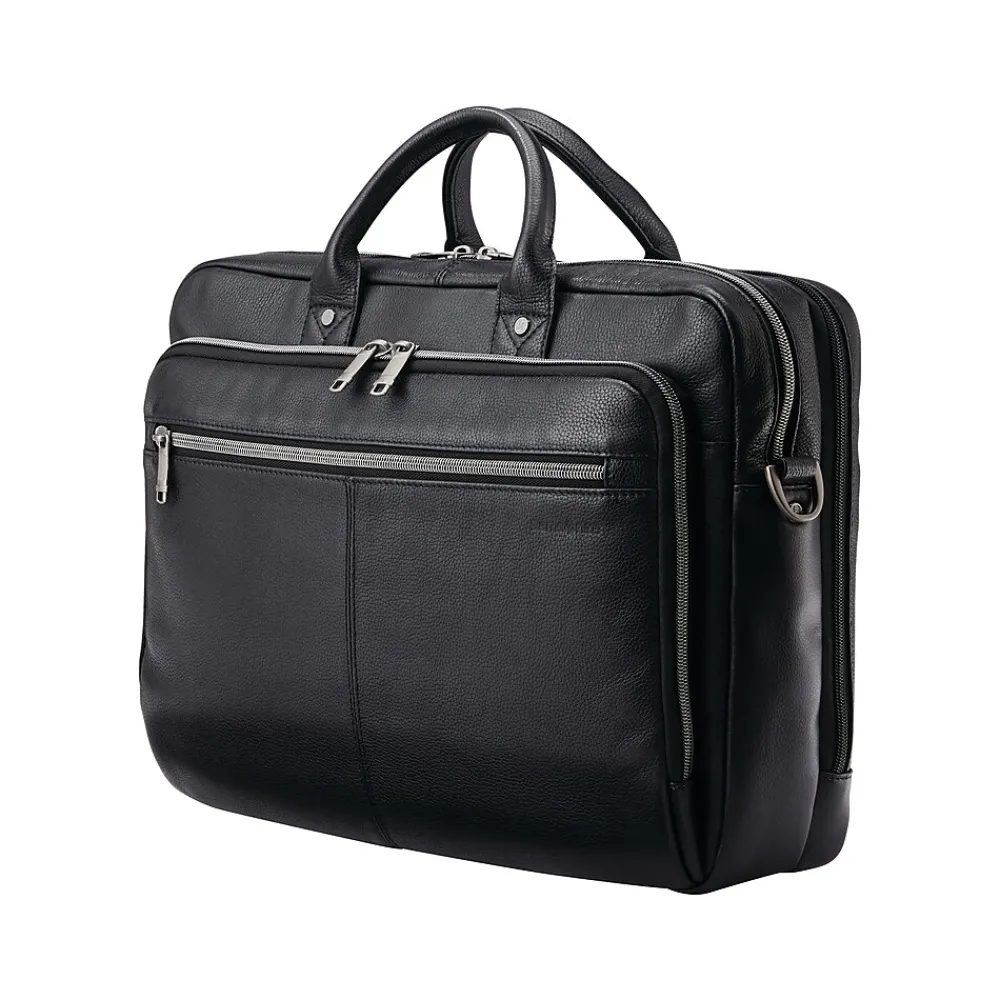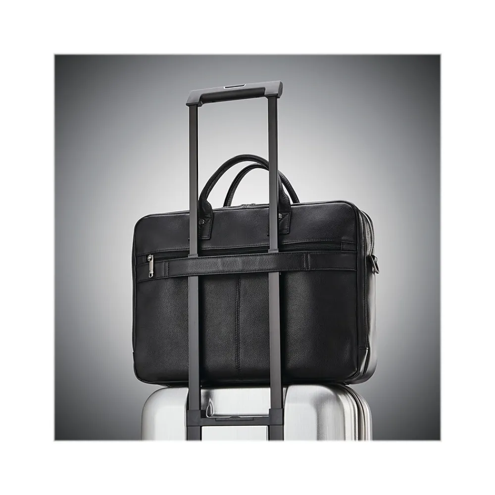 Practical meets professional in this stylish new look. The Samsonite Classic leather top-loading briefcase combines compartments for all your tech needs with a back compartment dedicated to file organization. Every professional deserves the ease of organization that the Samsonite Classic leather top-loading briefcase provides.