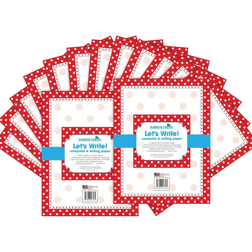 Barker Creek’s Red & White Dot Computer Paper 2-Pack is affordable and beautiful! Use it vertically for writing letters home and other correspondence and then turn it sideways to create customized award certificates, notices…and more! The possibilities are limited only by your imagination! Each set includes 100 sheets of decorative paper that measure 8 ½” x 11”. This computer paper is compatible with most laser printers. Coordinating product available: Search Barker Creek Dots.