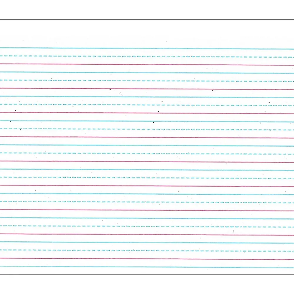 Clean white sulphite paper is printed with a red baseline and a broken blue midline to make it easy for second-grade students to find the headline quickly and easily. Design features 1/2″ ruling the long way. Recyclable paper is printed on both sides.
