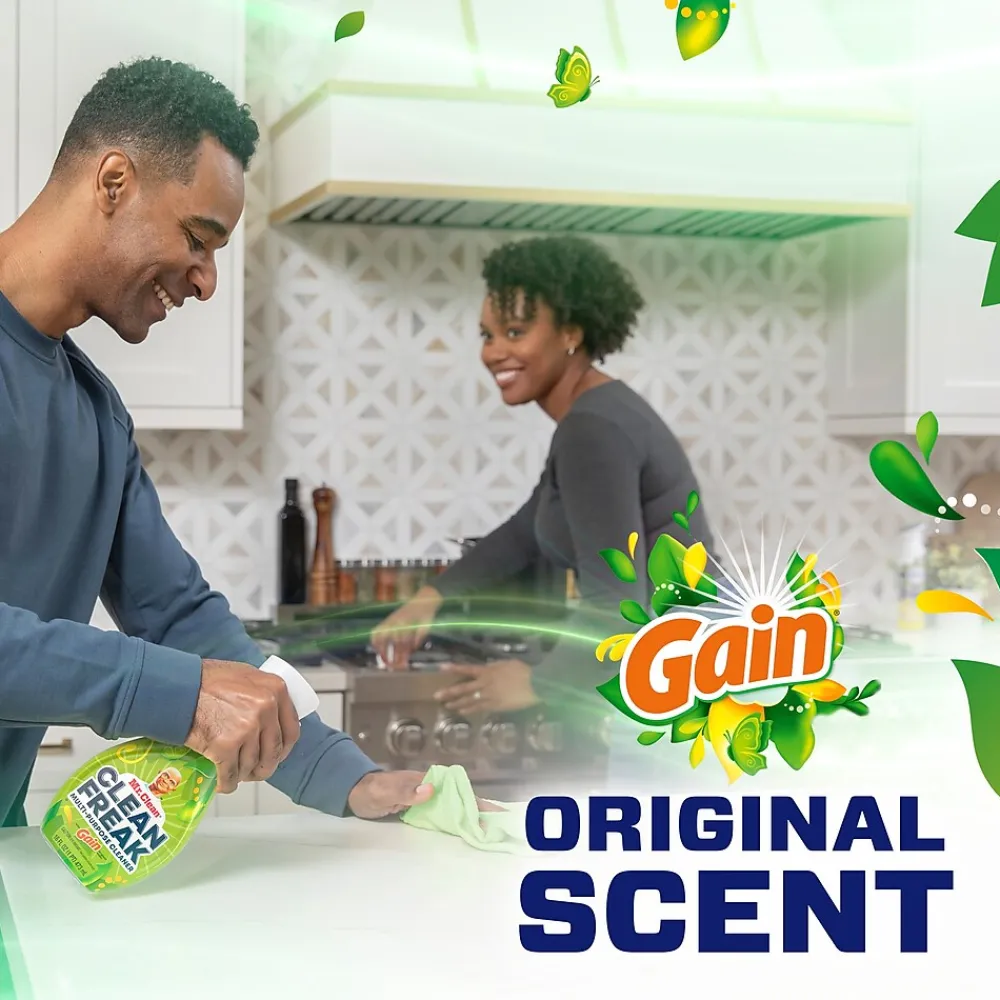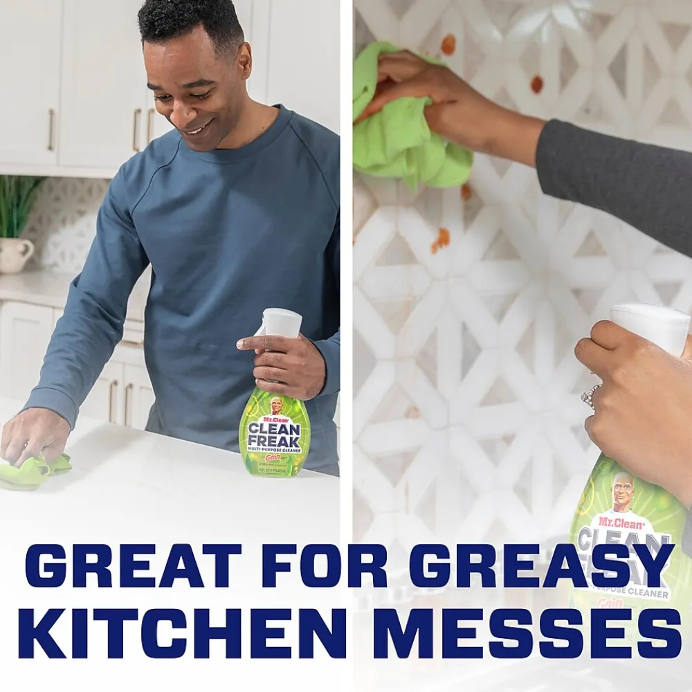 Clean Freak Mist multi-surface spray muscles through grime, tough dirt, and grease to make messes a distant memory. Use it from any angle to put hard-to-reach dirt away for good. And to top it all off, Clean Freak Mist multi-purpose spray leaves your home smelling fresh with a Gain scent.