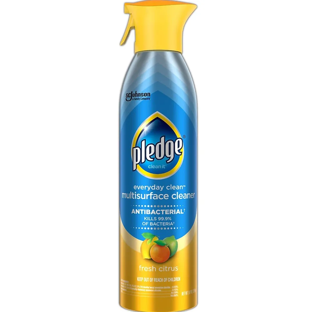 Shine, polish and repel dust with this 9.7-ounce multi-surface antibacterial everyday cleaner. This spray is usable on marble, granite, wood, laminate, stainless steel, electronics, and most other hard surfaces. This Pledge multi-surface antibacterial everyday cleaner contains no CFCs and features a citrus scent that is sure to delight, while the spray nozzle makes it simple to use.
