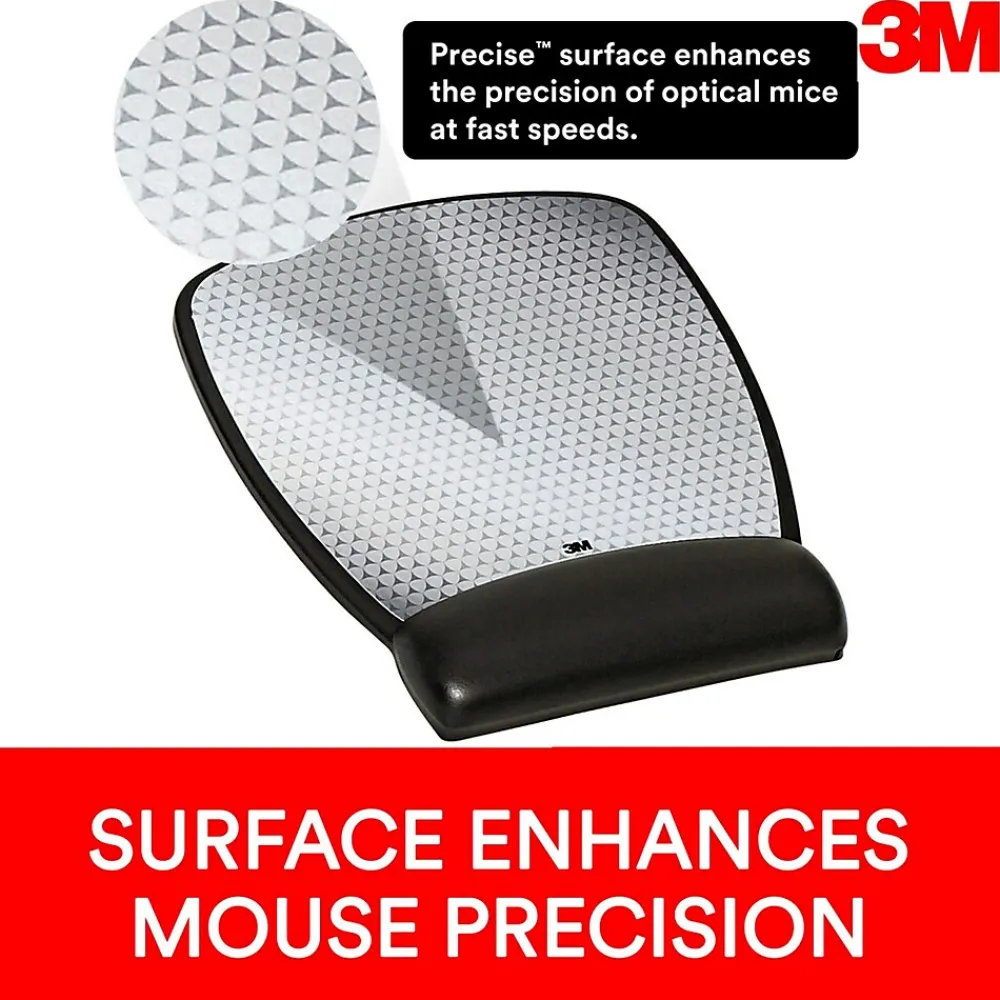 3M Precise Mouse Pad with Gel Wrist Rest MW309LE enhanced performance and battery savings, soothing gel for optimal comfort