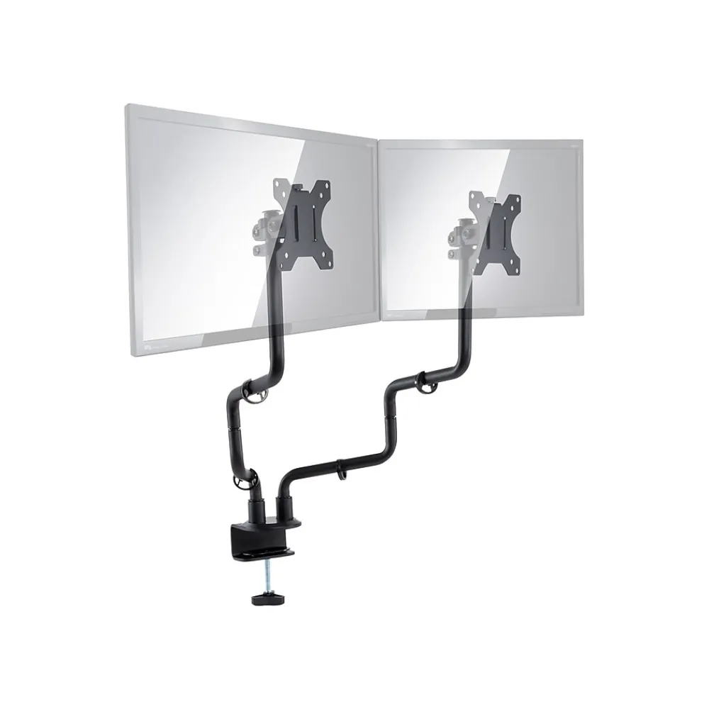 - Each arm holds a 32″ monitor weighing up to 14.5 lbs.