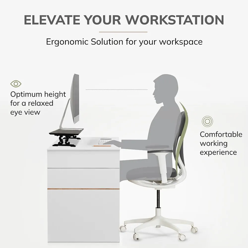 - Raises monitor screens 4.75″ for comfortable viewing