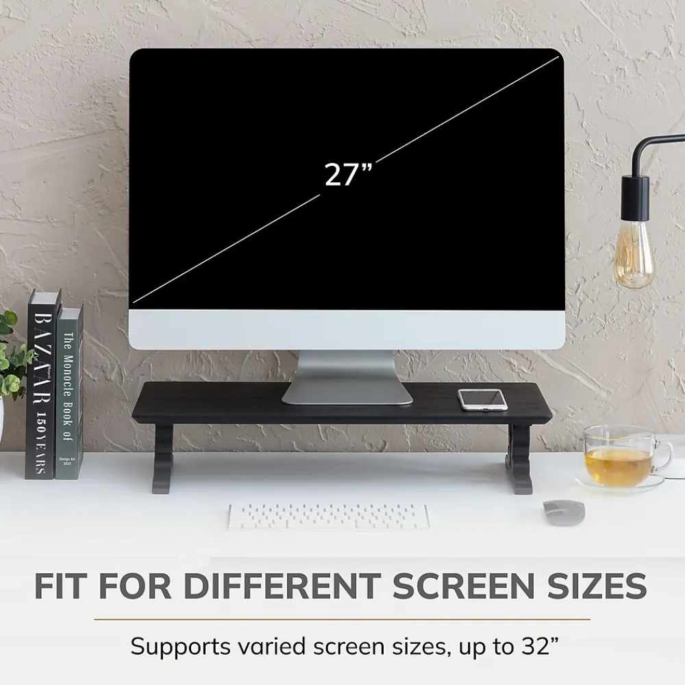 Tired of a cluttered and uncomfortable workspace? Anji Mountain’s inspired Monitor Stands are the solution you’ve been searching for. Crafted from sustainable and solid acacia wood with a rich black finish, these stands boast a traditional design with integrated legs that complement any décor. Enhance your comfort and productivity by elevating your screen to an ergonomic height, reducing neck and eye strain. The anti-skid EVA foam foot pads ensure stability, while the finger joint construction guarantees durability. This sturdy stand supports up to 22 pounds, helping you create the perfect workspace for your needs.Upgrade your workspace today with the modern elegance and functionality of Anji Mountain’s Monitor Stands.
