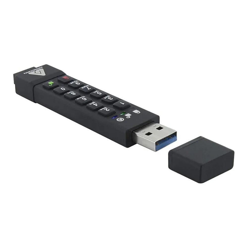 Aegis Secure Key 3z Merges Advanced Data Protection, Affordability, and Mass Configurability Easy to use FIPS 140-2 Level 3 (pending) USB 3.0 flash drive with on-the-fly AES hardware encryption and secure PIN access With software-free operation, cross-platform compatibility, USB 3.0 speed, Aegis Configurator compatibility, and our most advanced security feature set, Apricorn’s Aegis Secure Key 3z takes advanced data security to a new level of efficiency and affordability. This easy to use USB 3.0 flash drive incorporates PIN access with military grade 256-bit AES XTS hardware encryption. FIPS 140-2 Level 3 to meet the U.S. government standards for information technology and computer security. NIST FIPS 140 is the cryptography standard program required by the US federal government for protection of sensitive data. The Aegis Secure Key’s FIPS 140-2 validation covers 11 areas of its cryptographic security system, including physical security, cryptographic key management and design integrity. Available in four levels, the Aegis Secure Key’s FIPS 140-2 Level 3 validation encompasses both the Aegis Secure Key’s physical tamper-resistant features as well as its identity-based authentication. Utilizes Military Grade 256-bit AES XTS Hardware Encryption. All data on the Aegis Secure Key is encrypted on the fly with the built-in 256-bit AES XTS hardware encryption. Onboard Alphanumeric Keypad – Prevents Hardware and Software Key Logging. Using a rechargeable battery, the Aegis Secure Key enables the user to unlock the drive with a 7-16 digit PIN BEFORE connecting to the USB port on your computer, tablet or mobile device. The embedded keypad prevents hardware and software key logging attempts to capture your password entered via the host system. Software-Free Design – With no admin rights to contend with, the Aegis Secure Key is a breeze to implement. Independent User and Admin PINs. The Aegis Secure Key can be configured with independent User and Admin PINs, making it ideal for corporate and government deployment. If the User forgets their PIN, the drive can be unlocked using the Admin PIN which can then clear the forgotten User PIN and allow for the User to set a new PIN. User Forced Enrollment, Once a device is configured by the Admin, it can then be deployed in a state of USER FORCED ENROLLMENT in which the User must first establish his or her own User PIN before the drive can be accessed or used. Data Recovery PINs, In the event that a User PIN is forgotten, up to 4 one-time use recovery PINs can be programmed to permit access to the drives data by creating a new state of User Forced Enrollment.