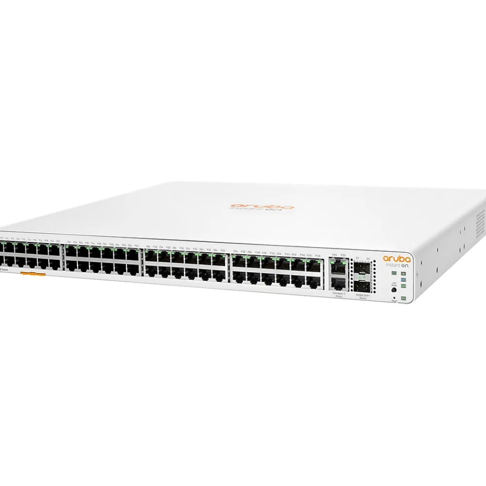 Aruba Instant On 1960 Switch Series includes four 10GbE connections to connect to servers, network storage devices, or to other switches. Two connections of 10GBASE-T deliver 10GbE over copper Category 6a cabling for simple, affordable, high-bandwidth connections to a maximum distance of 100 meters. Each switch has a pull-out tag, known as a luggage tag, on the front panel of the switch. The tag includes a QR code that includes switch ID information (SKU number, SKU name, serial number, and MAC address) for easy switch onboarding through Instant On mobile app. The Aruba Instant On mobile app and cloud-based web portal make cloud-managed stacking easy — just follow the recommendations to stack up to four Aruba Instant On 1960 switches and manage as a single entity. The Aruba Instant On mobile app automatically detects members, making multiple stack members easy to setup and manage remotely. Automated configurations and streamlined workflows allow users to manage all stack members through one single dashboard without the need for device reboot. The Aruba Instant On 1960 Switch Series lets you use VLANs and Access Control Lists to set bounds on what data can be seen by which users. Leverage 802.1X with a RADIUS server to ensure only known and authorized users can access your network. Supports Automatic denial-of-service (DOS) monitors and protects the network against malicious attacks.