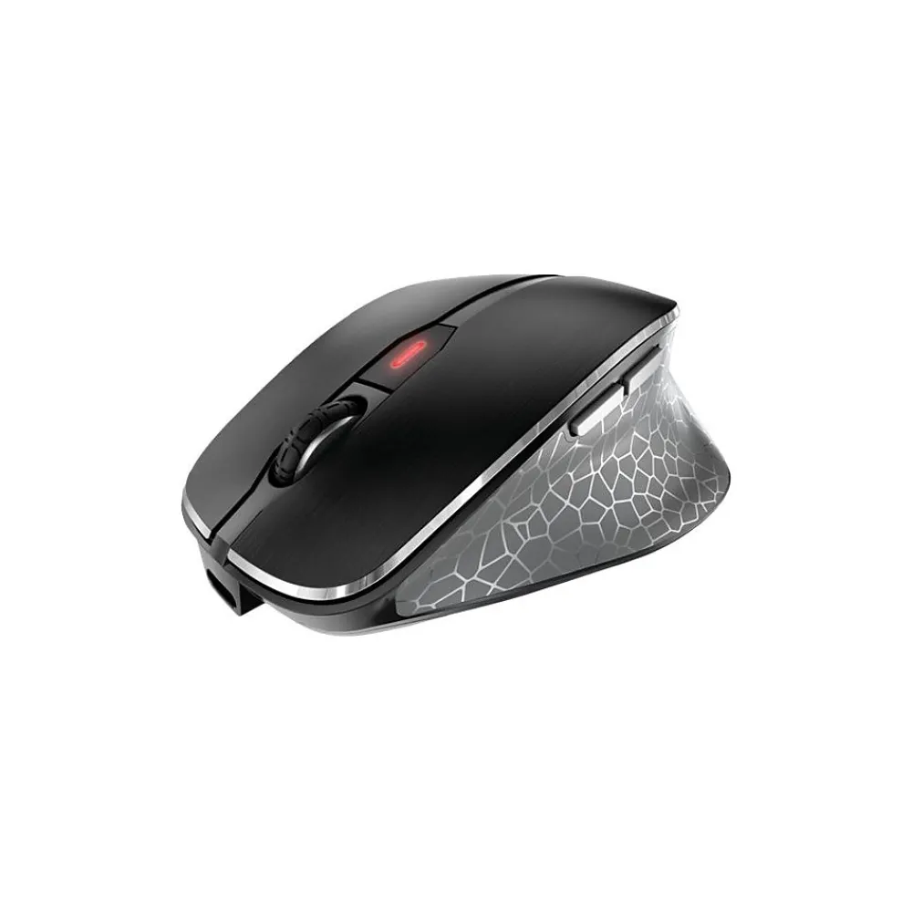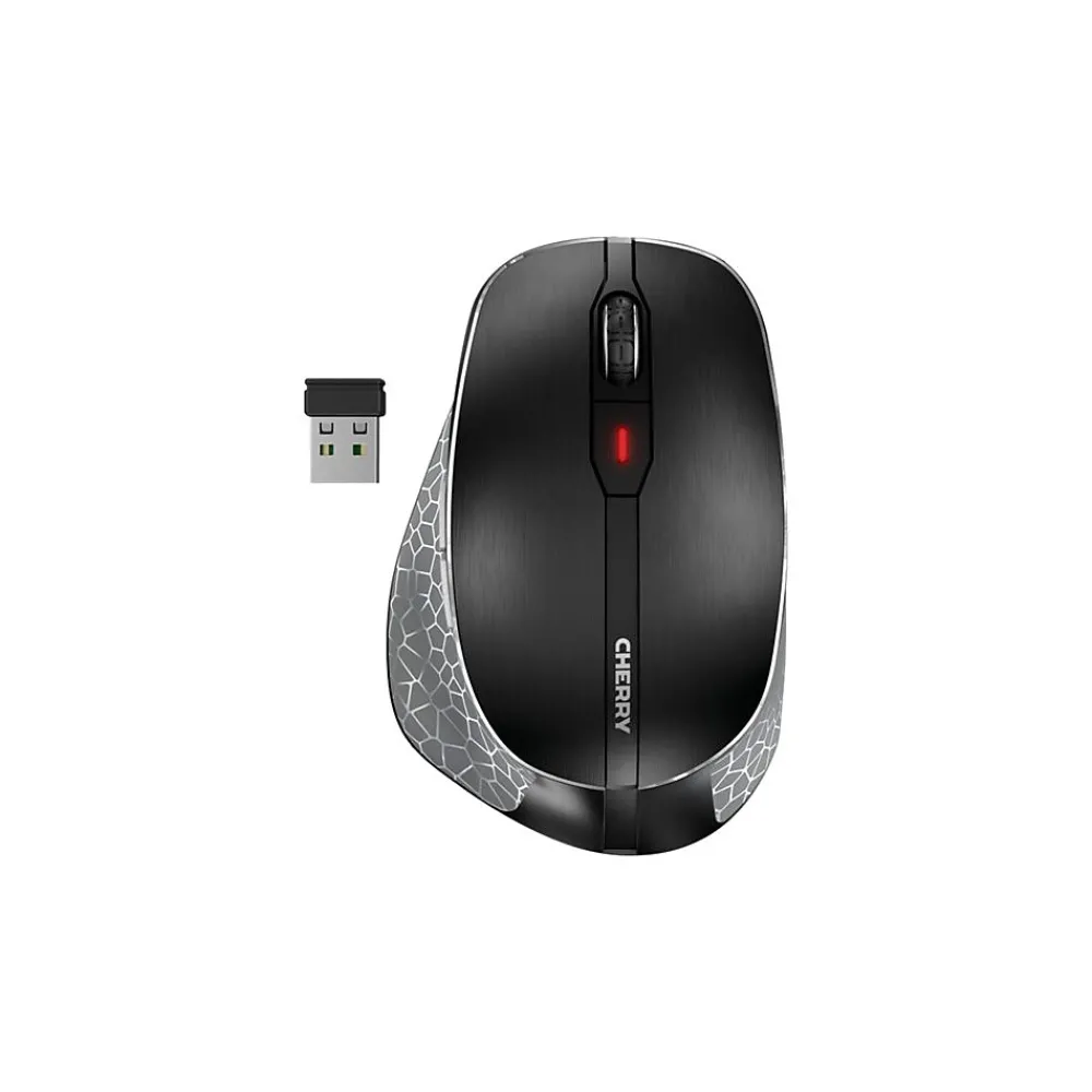 Uncompromising quality, exquisite design, the very latest technology and the finest materials: These are the ingredients of the CHERRY MW 8C ERGO wireless mouse. The large, ergonomic form is designed for use with the right hand. Even after hours of intensive work, it still sits comfortably on the mouse. Mouse buttons made of anodized aluminum pamper the hand with their pleasant feel. Comfort is underlined with rubber-padded side sections, with thumb-rest and trendy Voronoi pattern. The thumb automatically finds a pleasant position and can rest relaxed. Large gliding surfaces allow the mouse to move lightly over the desktop, relieving stress from the wrist. Every part of this mouse is made of the highest quality materials. With a housing made from aluminum, metal scroll wheel, and premium soft feel Voronoi pattern at your fingertips, the mouse visually conveys that a unique user experience awaits. The MW 8C ERGO premium wireless mouse. Extra comfort with convenience. Experience a mouse that will compliment your “work from anywhere” needs – on any surface, on any device, and know your data is secure. With a metal scroll wheel, magnetic storage for the USB receiver, and a protective pouch. Experience Cherry.