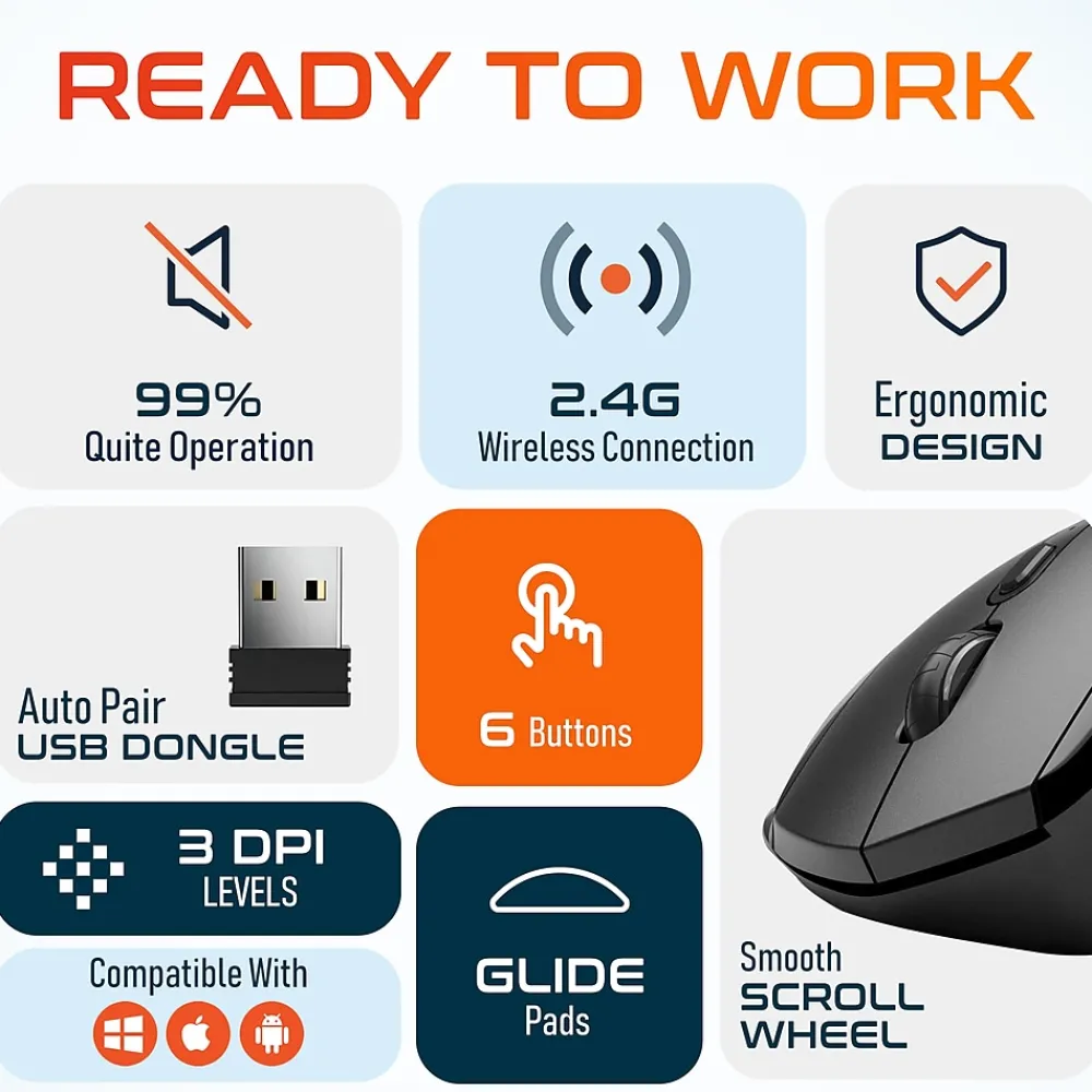 - Features a robust 2.4GHz wireless connection, offering compatibility with a range of operating systems, including Windows, macOS, and iOS