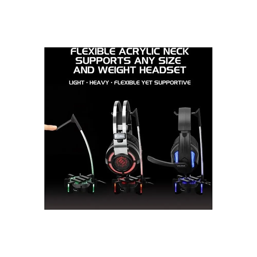 Enhance your gaming desk with the Enhance pro gaming headphone stand designed with custom LED lighting, four USB ports, and a sleek and modern transparent acrylic neck that complements your love of all things RGB. Mount your headset and experience the incredible practicality and style that only Enhance gaming can offer.