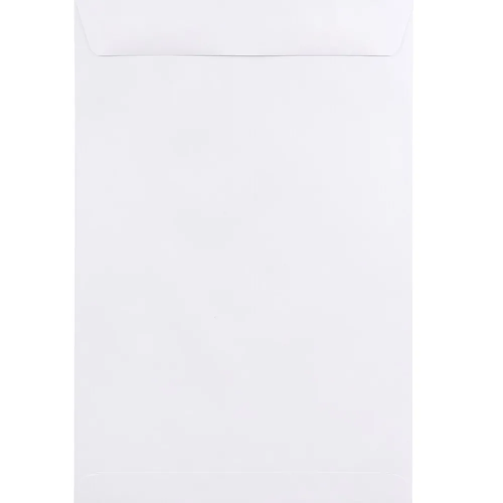 JAM PaperĀ® White 10 x 15 Open End Envelopes are made out of smooth, high quality, 28lb paper and feature a versatile and plain bright white color! This carton contains a large and even total of 1000 envelopes. Each one measures a roomy 10 x 15 inches in size and opens on one of the 10 inch ends. This large size makes these envelopes ideal for enclosing letter and legal sized documents without any needs for folding and no risk of creating messy, unwanted creases. In order to ensure that the items placed inside of these envelopes remain secure while being transported from place to place, each one of these envelopes has a straight flap opening with a reliable gum closure.