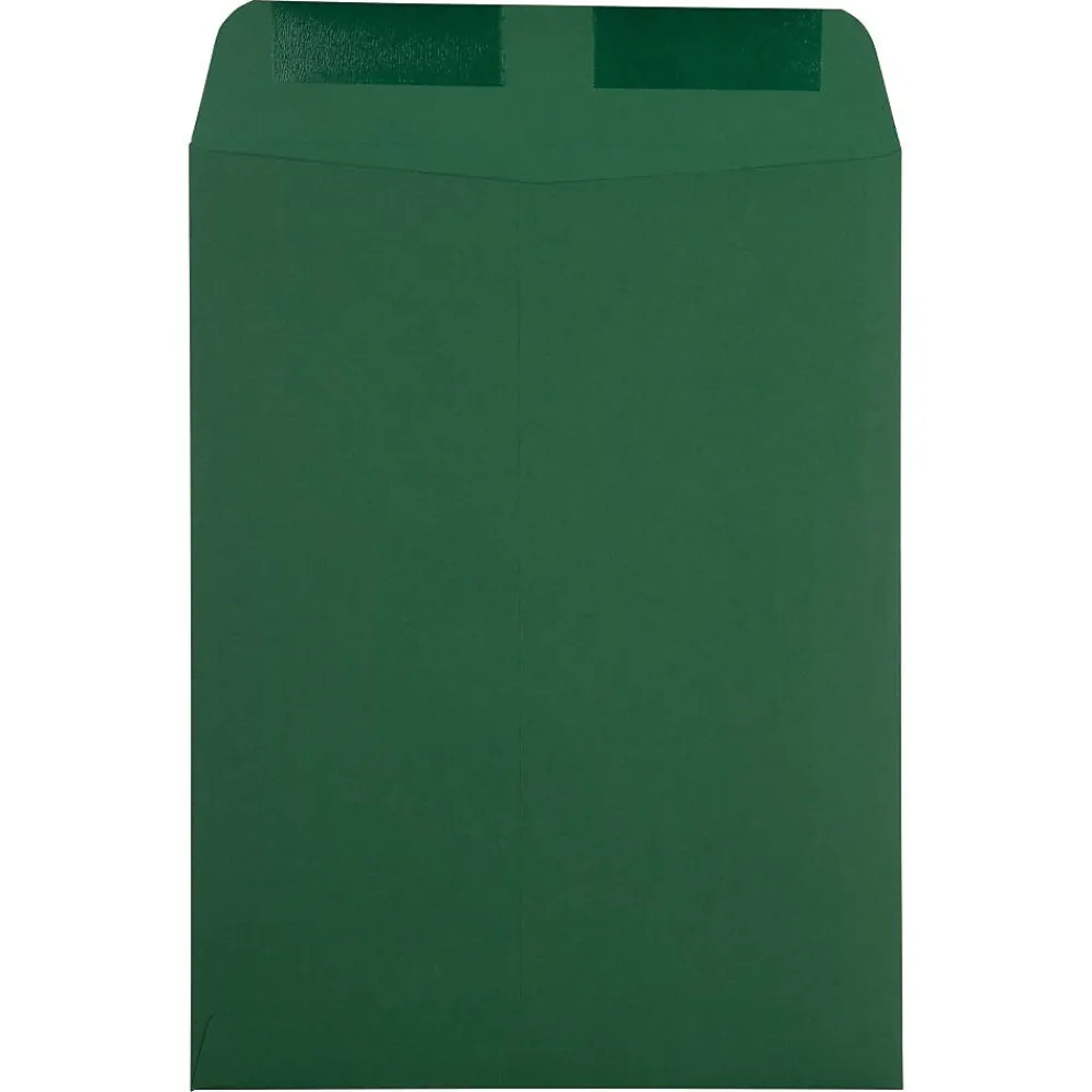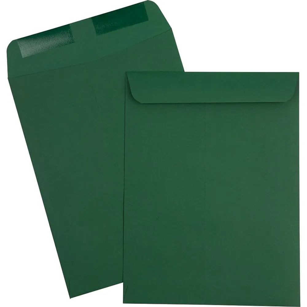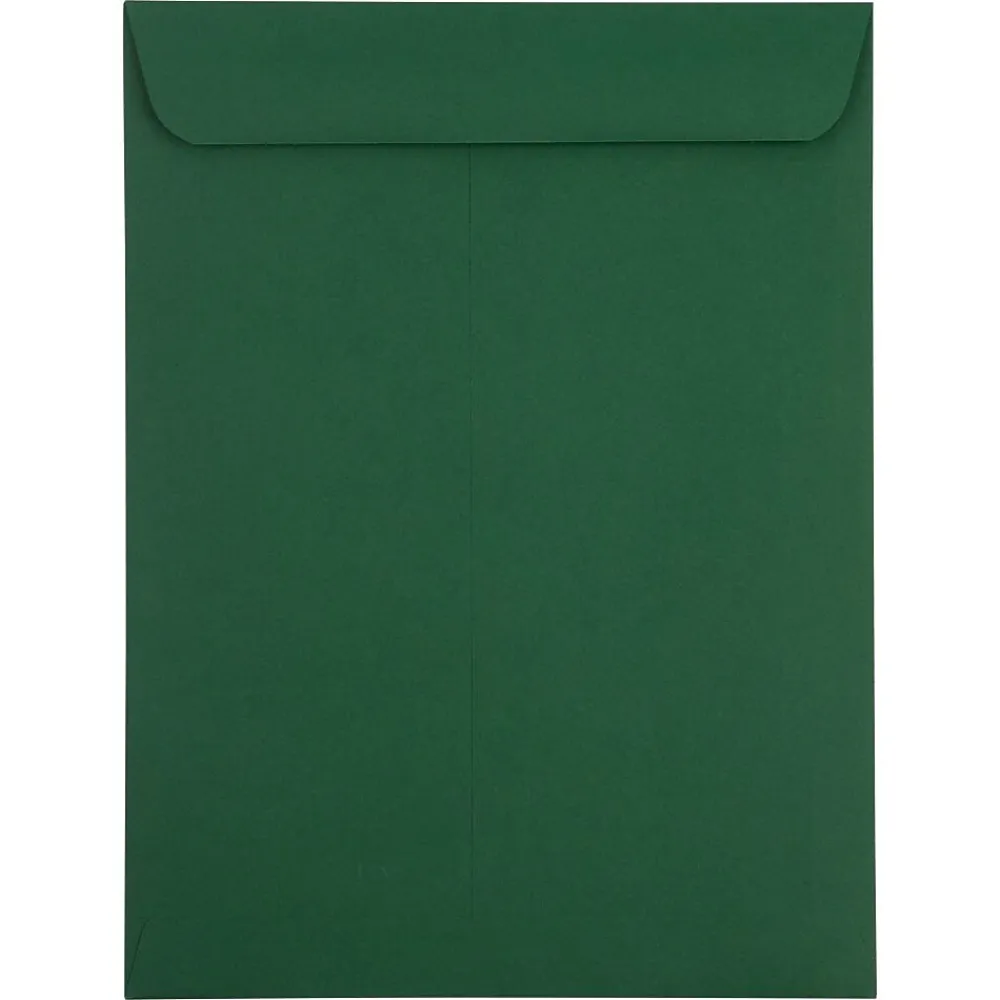 JAM Paper Dark Green 9 x 12 Open End Envelopes provide a fantastic option for getting mailed documents and forms noticed in the mailb.oxes or on the desks of their recipients! These envelopes measure 9 x 12 inches in size, making them ideal for standard sized sheets of paper. Each one is made out of superior quality, 28lb., and slightly textured paper! To keep items secure as they travel through the mail, these commercial flap envelopes feature reliable gum closures. This pack contains a convenient sum of 50 envelopes. The deep, dark, forest green color of these envelopes stands out, and is great for green-themed promotions or events. Size: 9in x 12in | Color: Dark Green | Quantity: 50