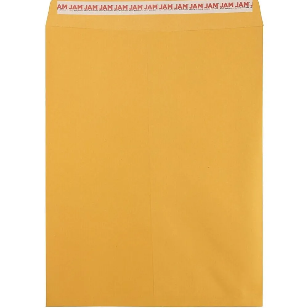 JAM Paper Brown Kraft Envelopes with Peel & Seal Closures measure 12 x 15.5 inches in size and are made out of smooth, high quality manila paper. Each one of these envelopes opens on the shorter end and features a reliable, easy-to-use, self adhesive peel-and-seal closure to keep the contents placed within secure as they are transported through the mail. A fantastic option for a large number of home and office mailing purposes, these envelopes feature a light yellow-brown kraft color. There size makes them great for mailing standard sized and legal sizeddocuments with no need for folding and creating creases. They can also be used to mail small items, photographs, catalogues, articles of clothing, wall art.promotional materials, and much more! This box contains an even total of 50 envelopes. Size: 12 in x 15.5 in | Color: Brown Kraft | Quantity: 50/box