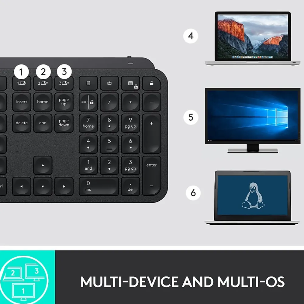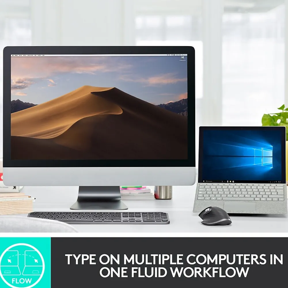 Introducing MX Keys, an advanced wireless illuminated keyboard crafted for efficiency, stability, and precision. Perfect Stroke keys are shaped for your fingertips, and increased key stability reduces noise while optimizing responsiveness. Tactile reference for hand positioning makes it easy to stay oriented and in your flow. The backlit keys light up the moment your hands approach and automatically adjust to suit changing lighting conditions. MX Keys follows your MX Master 3 – or another Flow-enabled mouse – from one computer to another, meaning you can type on multiple devices in one fluid workflow. With MX Keys you can truly master what you make.