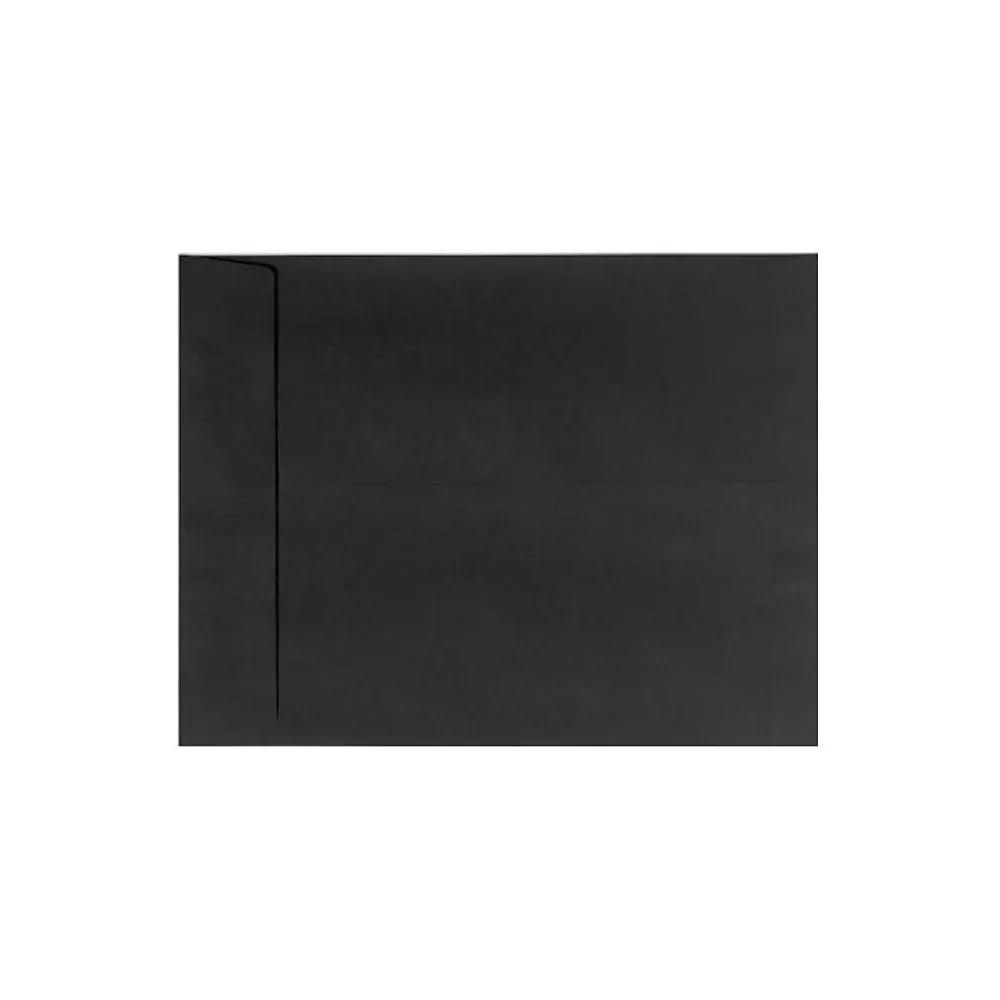 LUX™ Open end linen envelope in black color has flap for easy filling with peel & press secure sealing type. Envelope measuring 9″ x 12″ is ideal for holding coins/catalogs/jumbo cards, sold as 50 per pack.