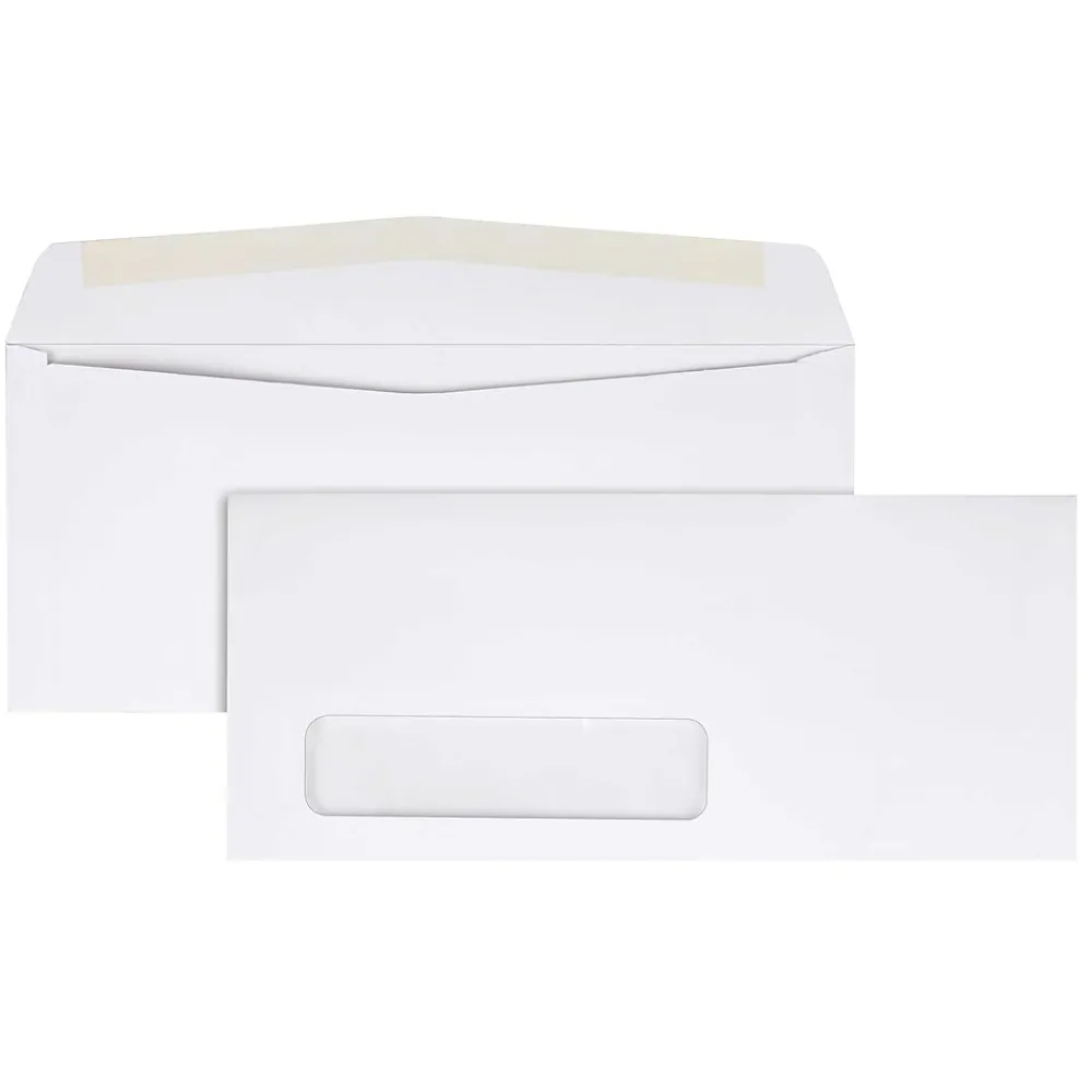 These 24 lb. white wove window envelopes can be used for invoices, checks, direct mail and more. The traditional diagonal seams & commercial flap is compatible with automated inserting and folding equipment. Stock up on boxes of 500, so you don’t run out!