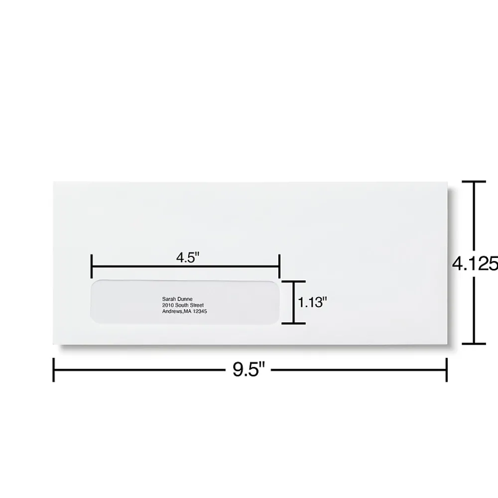 - These envelopes measure 4 1/8″ x 9 1/2″ in size, providing enough space for your mail