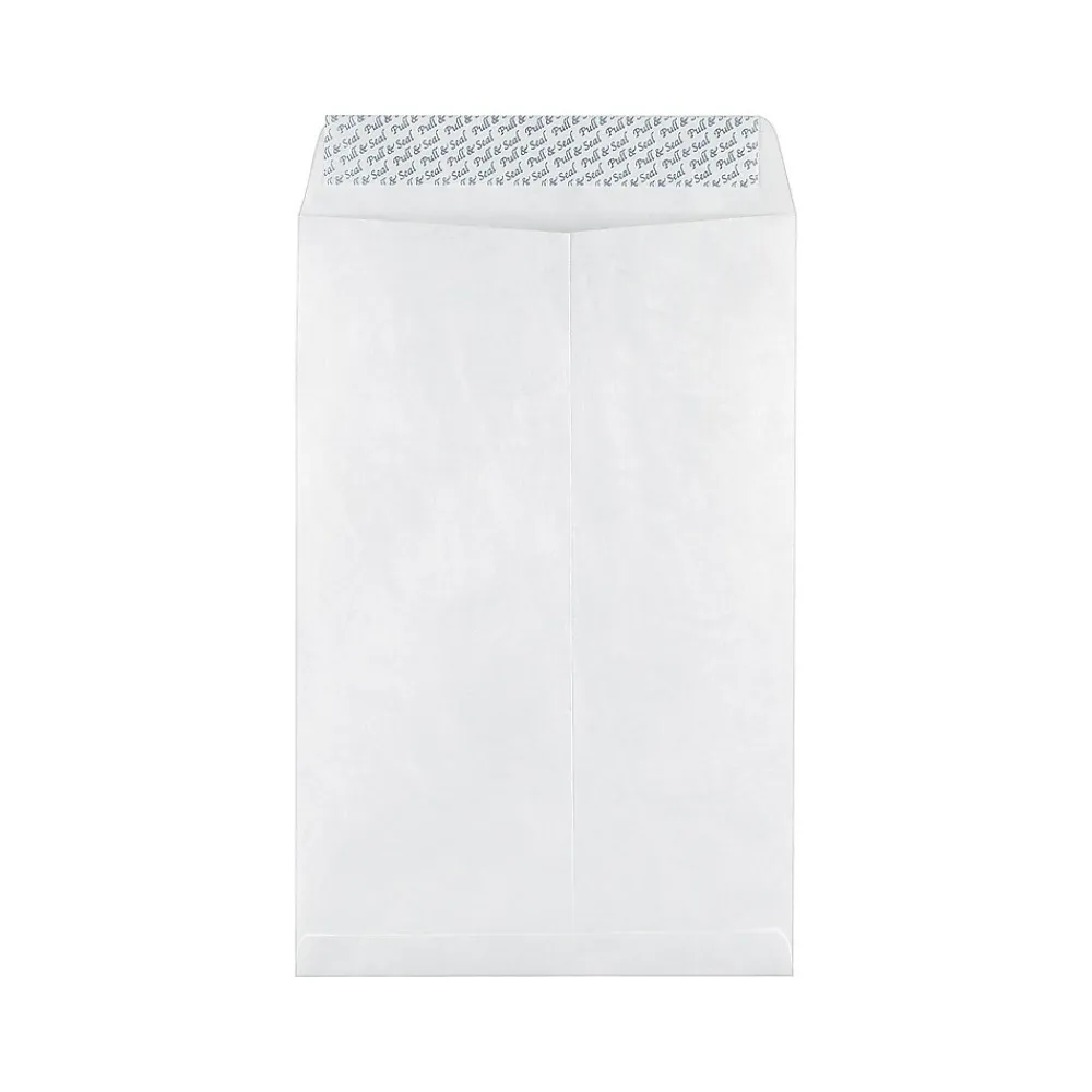 Store or mail documents safely with these sturdy Tyvek catalog envelopes. Each one is crafted with for heavy-duty durability that protects contents against ripping, punctures and water, while the QuickStrip closure feature lets you quickly close it by simply removing the strip and pressing it shut. These Staples catalog envelopes don’t require any sponges or water to seal.