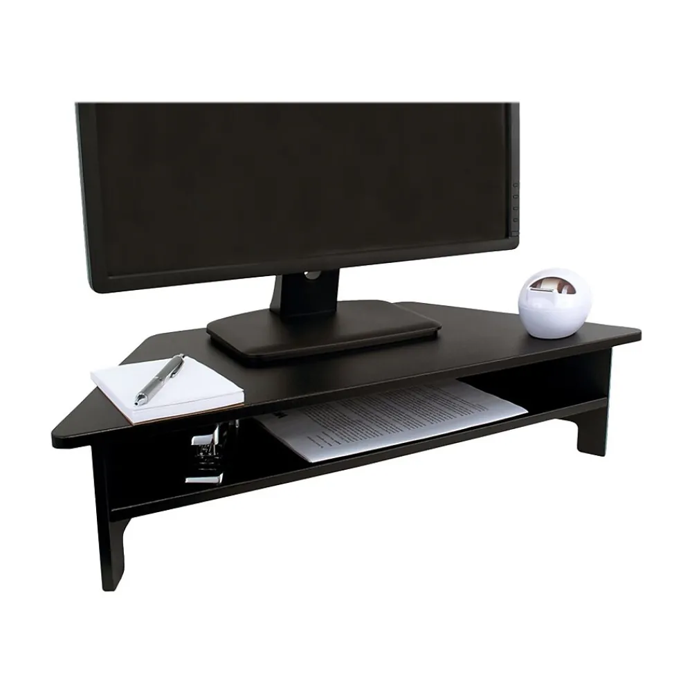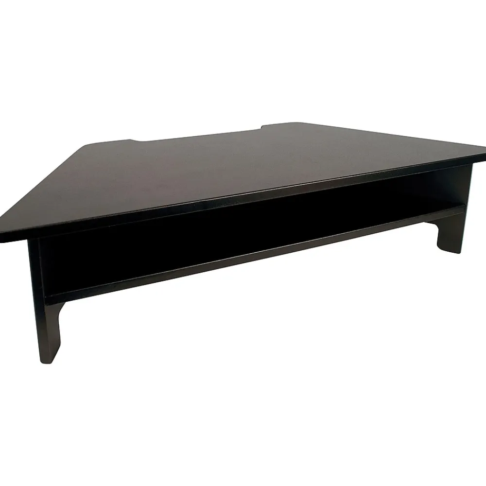 Raise monitors up to an ergonomic height with this monitor stand. Four non-slip rubber feet hold this stand securely in place and an optional height extender ensures a comfortable reach for users. This Victor monitor stand features a convenient shelf for storing documents or supplies, keeping spaces organized.