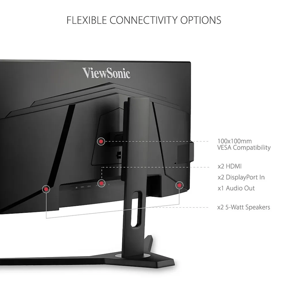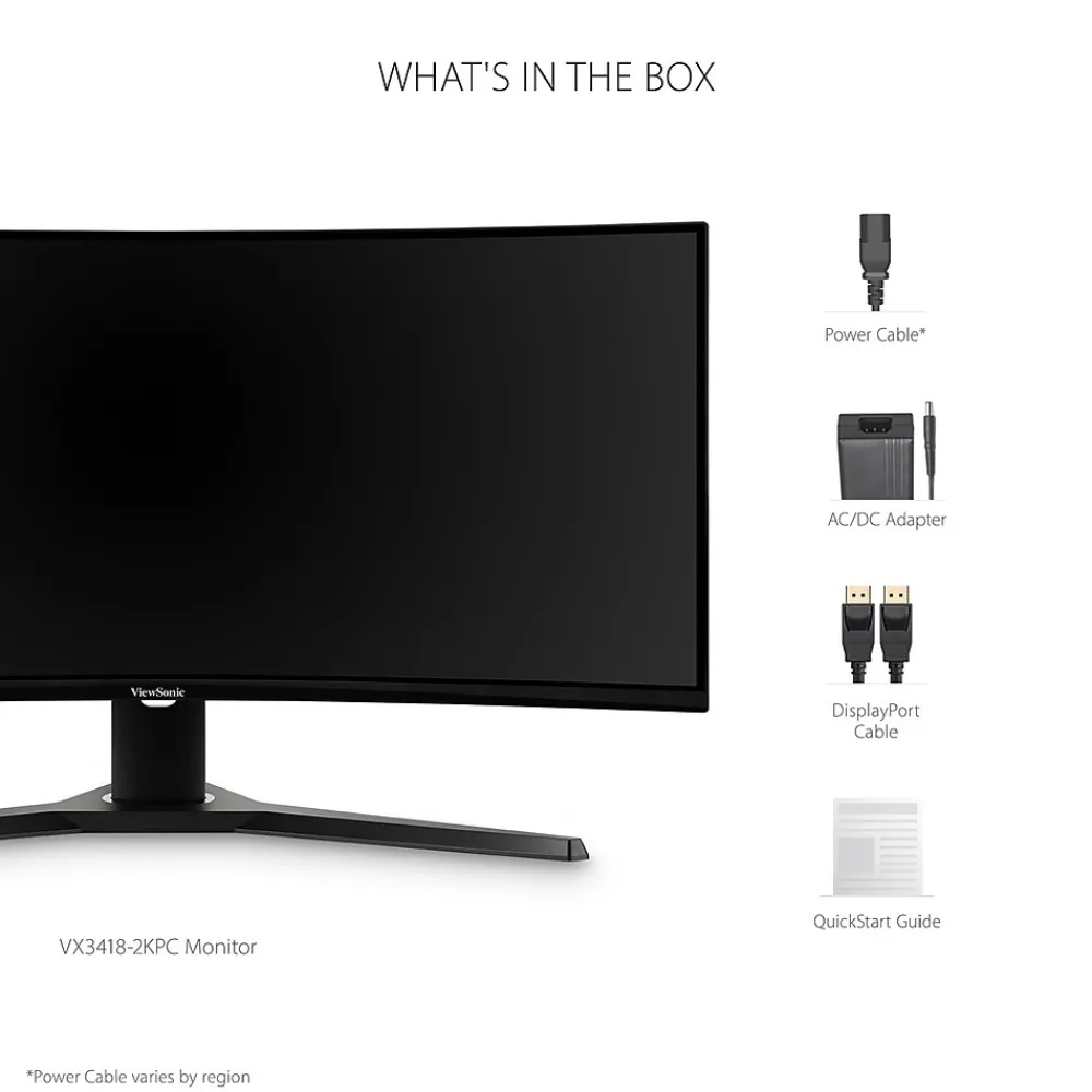 With an immersive 1500R curved screen and stunning WQHD 3440 x 1440 resolution, the ViewSonic VX3418-2KPC monitor provides an incredible viewing experience for work or play. With features including a high 144Hz* refresh rate, 1ms (MPRT) response time and adaptive sync technology, this monitor virtually eliminates screen tearing and stuttering for a fluid gaming experience. The VX3418-2KPC also comes equipped with ViewSonic exclusive ViewMode presets, which offer optimized screen performance for different home entertainment applications such as watching movies, editing files, or playing video games. Two HDMI (v2.0) inputs, and one DisplayPort (v1.2) input offers flexible connectivity for both general use and entertainment.
