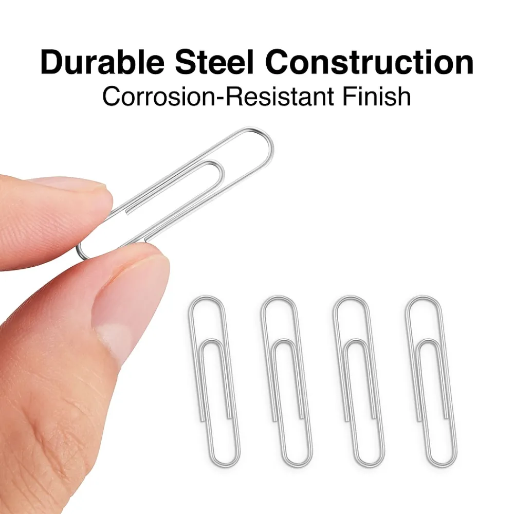 Staples paper clips help you manage your paper trail to keep documents and other pages organized temporarily. The clips feature a smooth finish that prevent tears and snags. The metal is corrosion-resistant to safeguard against discoloration when used in long-term storage. Each box contains 100 paper clips, and there are 10 boxes per pack, so you always have extras on hand for large offices and busy file rooms. Each box stores neatly in a drawer for maximum organization.