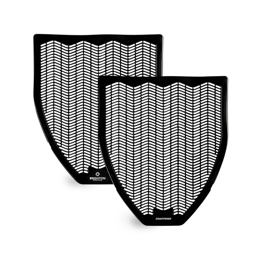 Stock your janitorial department with this carton of 6 disposable urinal floor mats. These Coastwide Professional black urinal floor mats absorb and neutralize urine for clean and hygienic restrooms, and the bulk packaging lets you handle public restroom needs.