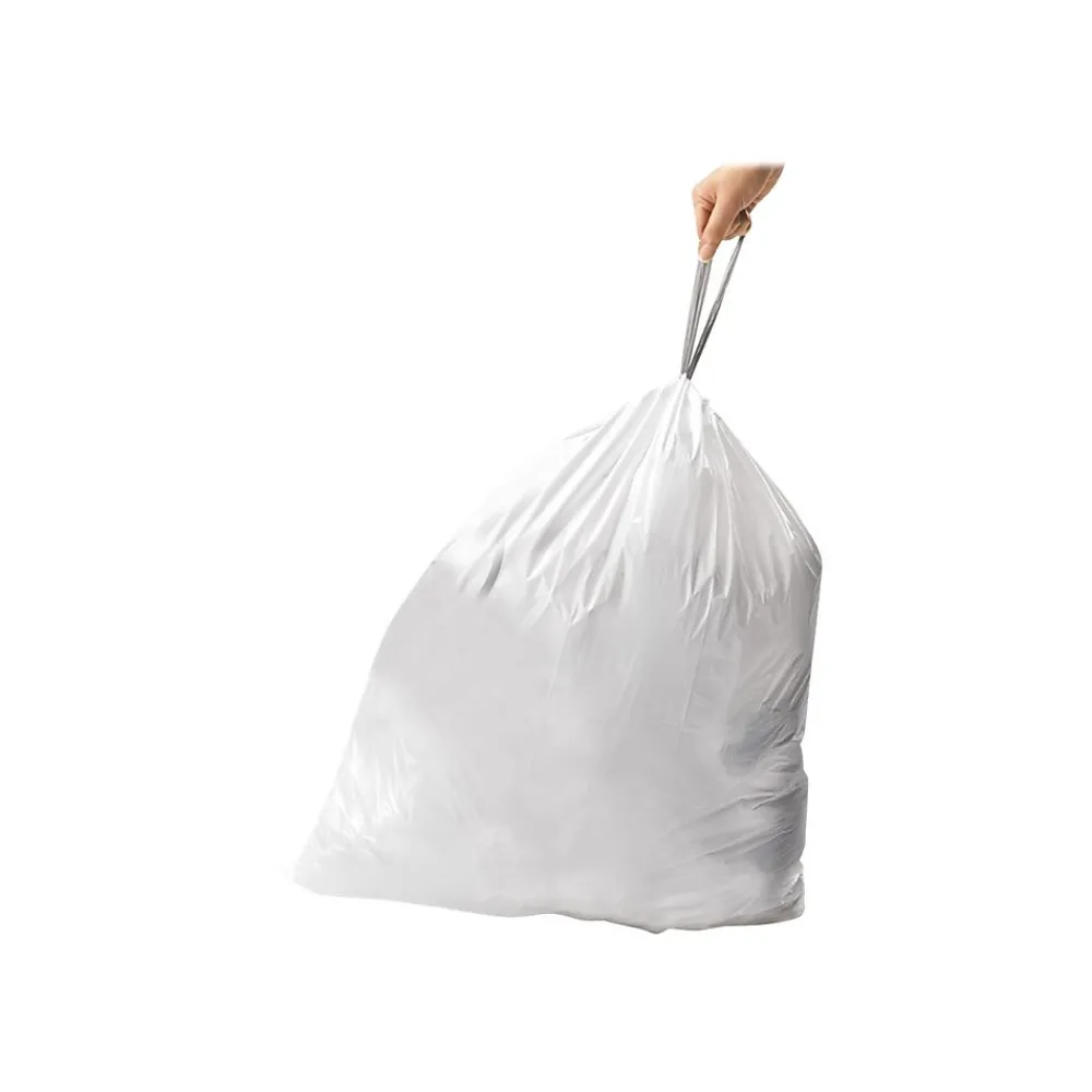 Ease cleanup chores with these garbage bags. Their sturdy seams and thick plastic construction prevent unexpected spills during transport, and they’re designed to fit code X cans without overlap or slippage. The built-in drawstrings on these simplehuman code X trash bags let you seal and carry them without the need for twist ties.