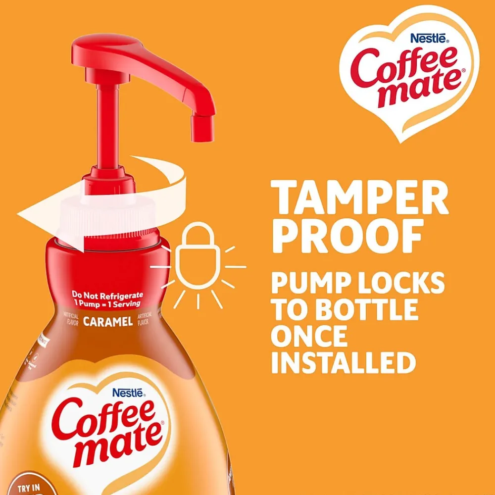 The Coffee mate Caramel liquid creamer adds a smooth and buttery caramel flavor to coffee beverages. With no refrigeration necessary and a long shelf life of 9 months, this Coffee mate liquid creamer is one of the most popular creamer formats, making it great for all food service needs.