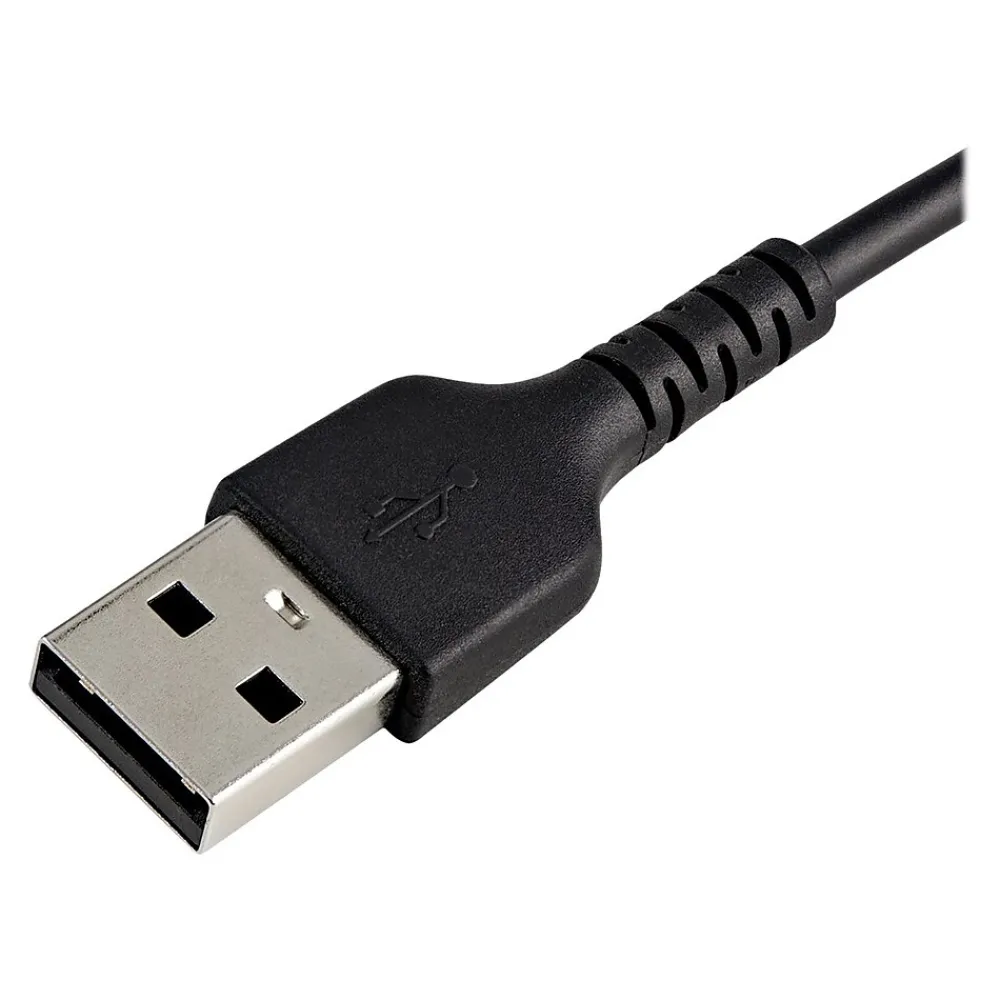 Durable Lightning Cable Reinforced with Aramid Fiber EMI Protection TPE Cable Jacket. This USB to Lightning cable withstands the daily demands of charging and syncing your mobile devices. Tested to endure strenuous wear and tear and winter and summer in-car use, the rugged cable is a must-have for both business and consumer applications. Built for Daily Use The durable Lightning cable has aramid fiber reinforcement that shelters it from the stress of frequent bends and twists. This also lets the cable flex without over-stretching, and strengthens the core of the cable. Cable Key Features Aramid fiber adds strength and durability to the cable Insulated conductors reduce friction, provide more flexibility EMI (electromagnetic interference) protection with aluminum-mylar foil with braided shielding TPE (thermoplastic elastomer) cable jacket is softer and more flexible than a standard PVC cable and environmentally friendly Flexible Strain Relief The cable is constructed to prevent the connector from separating from the jacket. The extra-long strain relief molding is tested to withstand over 10,000+ bend cycles at a 180° angle. Plus, the improved inner molding resists cracking and reduces cable damage. Connector Key Features Lightning connector provides 12W for charging your iOS devices Metal shield protects circuit board from EMI and reinforces the connection point Strain relief tested to tolerate over 10,000+ bend cycles at a 180° angle Comprehensive Product Testing & Expert Technical Support StarTech.com conducts thorough compatibility and performance testing on all our products to ensure we are meeting or exceeding industry standards and providing high-quality products to our customers. Our local StarTech.com Technical Advisors have a broad product expertise and work directly with StarTech.com Engineers to provide support for our customers both pre and post-sales. RUSBLTMM30CMB is an Apple MFi certified Lightning cable backed by a StarTech.com 2-year warranty. Note: DuPont and Kevlar are trademarks or registered trademarks of E.I. du Pont de Nemours and Company.