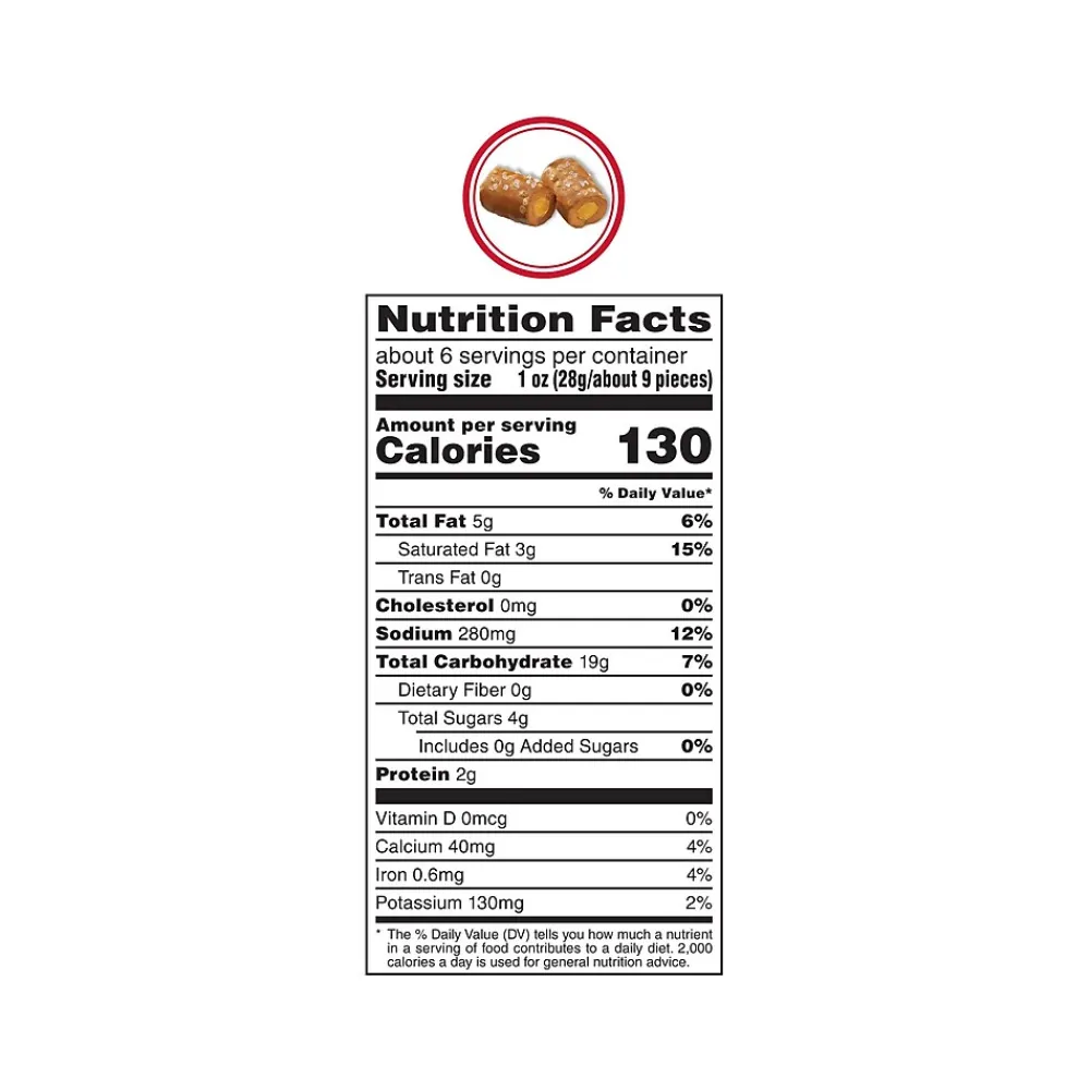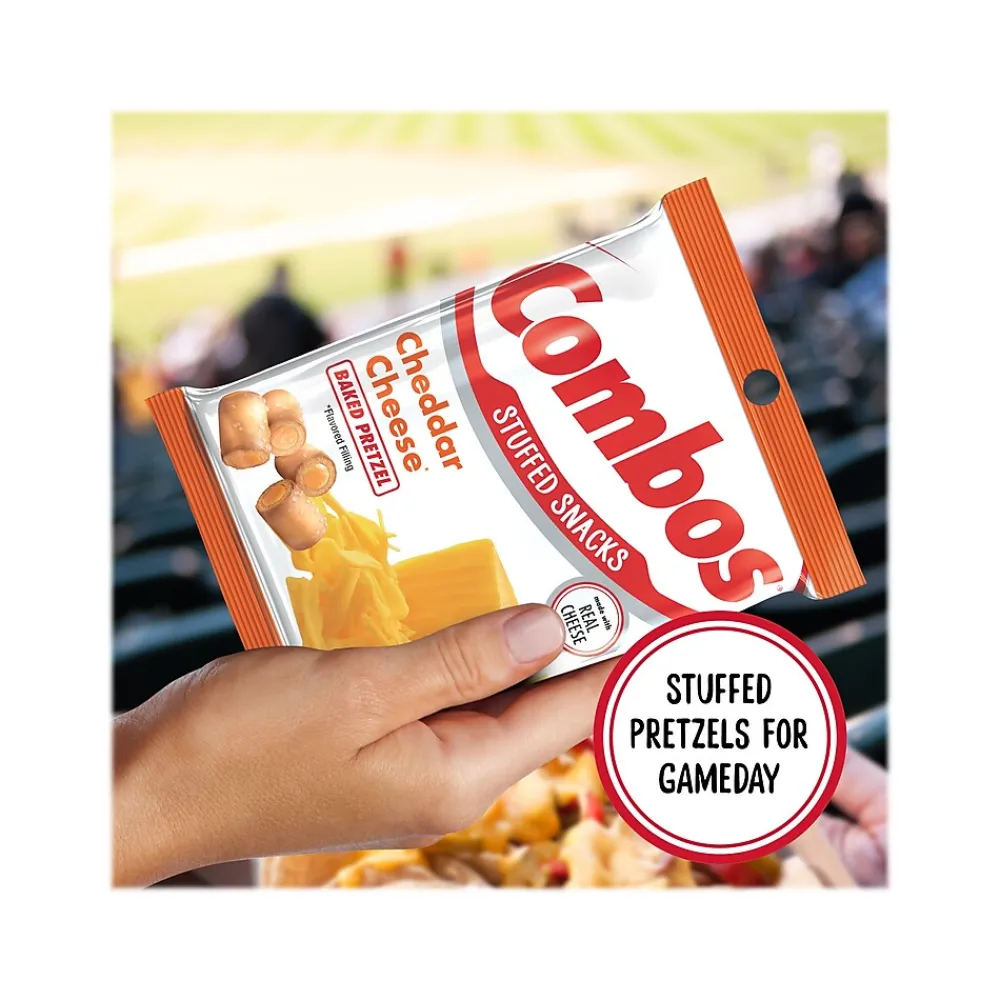 Grab these snacks for a quick bite any time of the day. These pretzels are oven-baked and made with real cheese, making them suitable for health-conscious workers. A cheddar cheese filling is stuffed into each pretzel, creating a savory and salty treat. This 7-ounce bag of Combos cheddar cheese baked pretzels come in a pack of 12, perfect for stocking break rooms, eating on-the-go or at your desk.