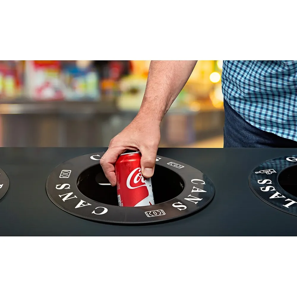 If you are looking for an attractive alternative to exposed garbage bags and other unsightly means of sorting trash from recyclables, the Alpine Industries waste and recycling bins are just the ticket. Lightweight, easily assembled and made of strong and durable corrugated plastic. Designed for indoor use in hospitality suites, meeting areas, dinners and similar venues, they perform best when bins are used as containers for disposable trash bags. Labels included for glass, plastic, paper, recyclables, cans and waste for 12 in. deposit openings.