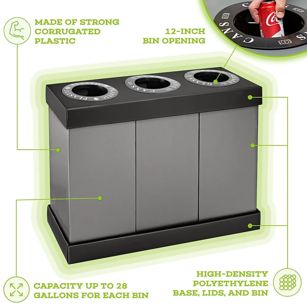 - This bundle includes a two and three bin waste and recycling center for a total of five convenient 28 gallon bins for large facilities