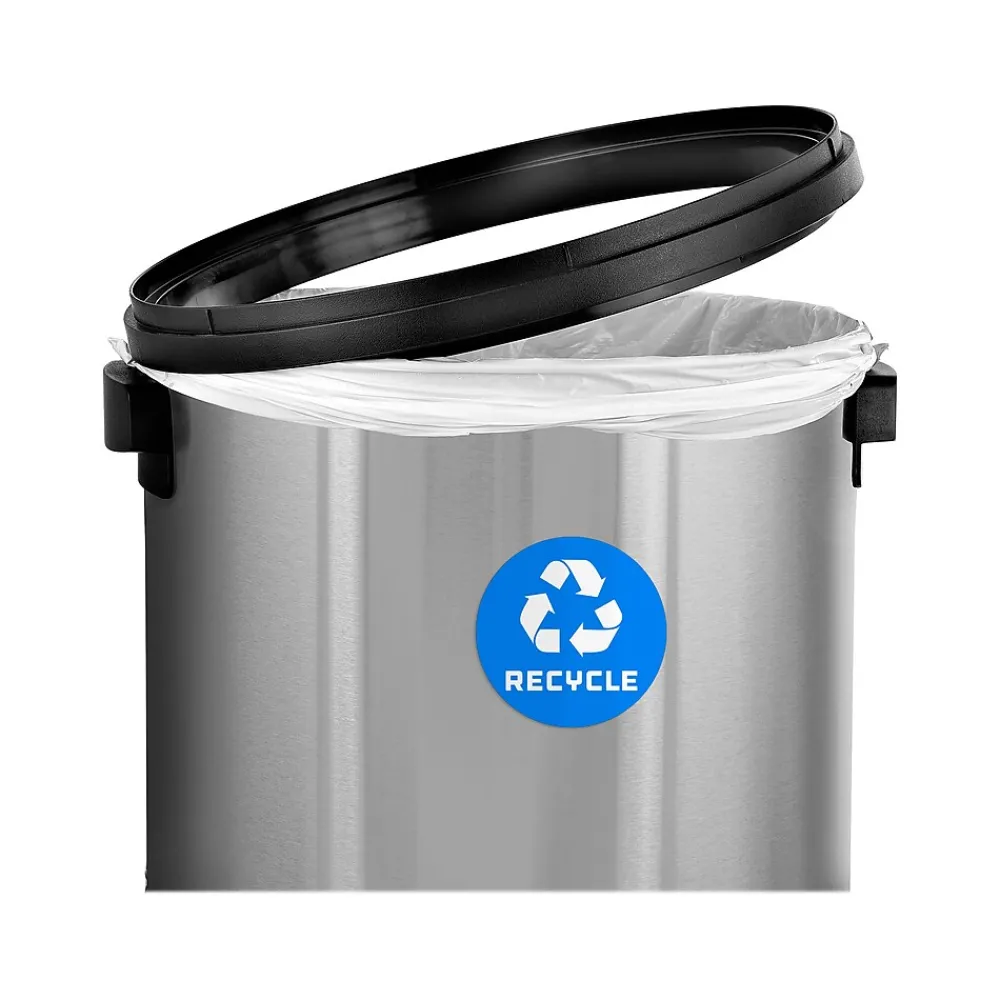 When equipping your business’s interior with waste receptacles, you want to be reassured it will survive constant daily use and add to your company’s aesthetic.With our modern, 17 Gallon Stainless Steel Indoor Recycling Receptacle with Swivel Lid, you can be confident you’re getting an everlasting product that will help maintain cleanliness in your facilities. To help accommodate a more significant amount of recycling, the 17-gallon capacity will fulfill your foot traffic demands. Included with every purchase is a durable recycling sticker that will identify its intended purpose. The vibrant color of the recycling sticker offers optimal visibility, assuring waste goes into the proper stream. In addition, the lids of the receptacle’s seamless design conceal trash bags and can easily be removed when needed. The large swivel lid will also allow precise and discrete disposal of all forms of waste while keeping unpleasant odors at bay. Our 17 Gallon Stainless Steel Indoor Recycling Receptacle with Swivel Lid will allow you to streamline waste collection in your high-traffic area while adding a touch of modern appeal.