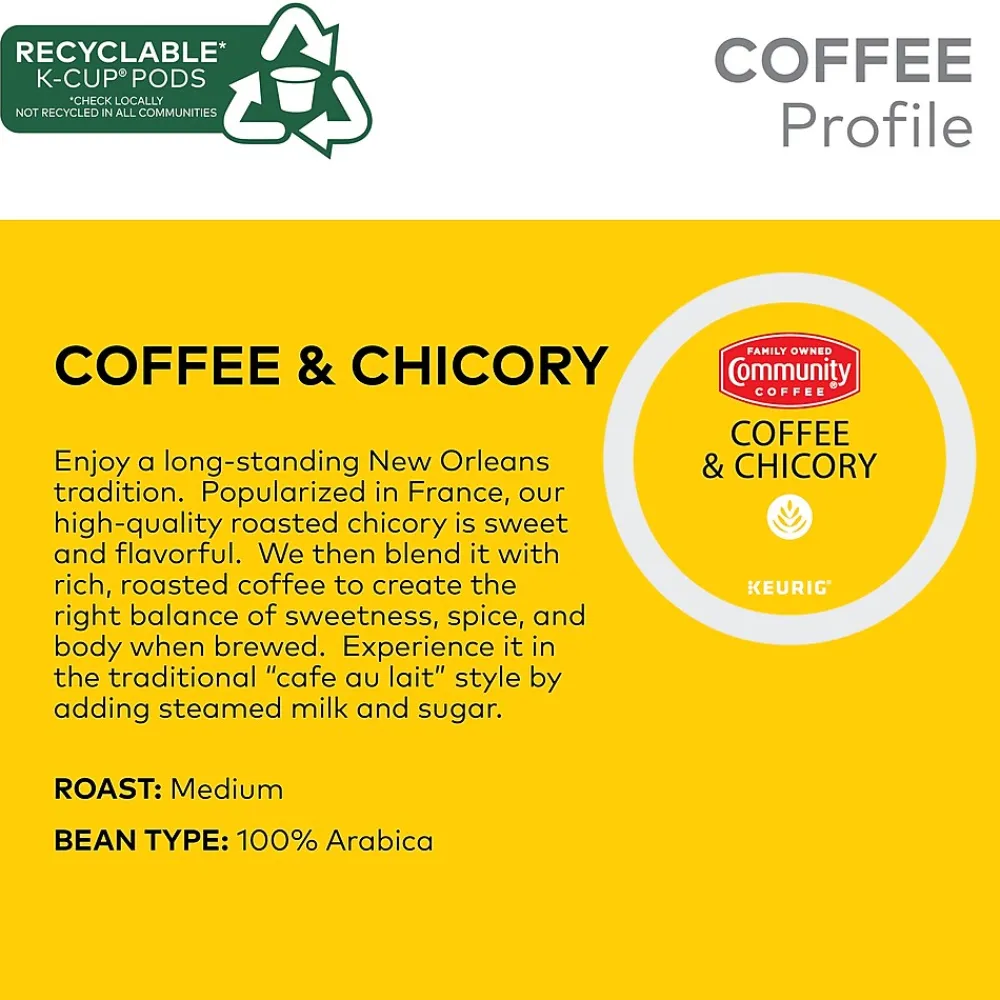 Enjoy a long-standing New Orleans tradition. Popularized in France, Community Coffee’s high-quality roasted chicory is sweet and flavorful. The chicory is blended with rich, roasted coffee to create the right balance of sweetness, spice, and body when brewed. Experience it in the traditional cafe au lait style by adding steamed milk and sugar.