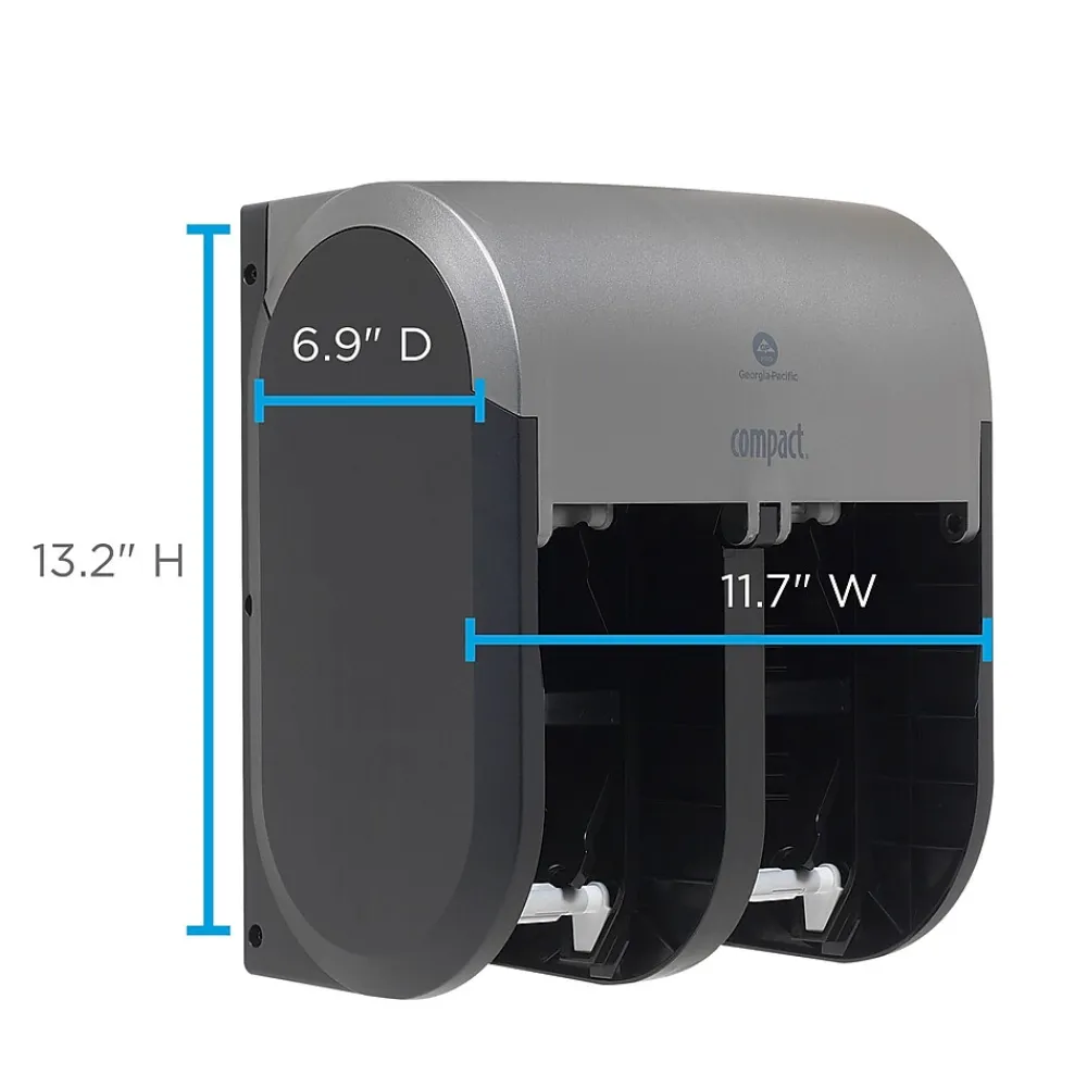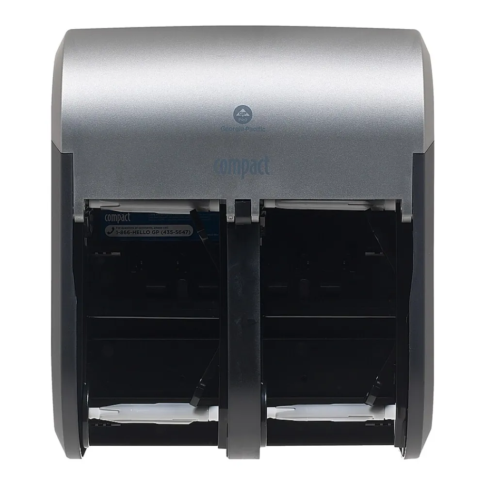 Compact® coreless toilet paper dispensing systems answer key needs for facilities managers when it comes to toilet paper for the restrooms. These high capacity systems help you avoid running out between service intervals and help reduce maintenance time typically spent changing out conventional toilet paper rolls. These systems save up to 95% in packaging waste compared to GP PRO’s standard roll toilet paper by eliminating stub-rolls, corrugate cores, paper roll wraps and the outer cardboard shipping case. And because the Compact® case has a smaller footprint, it requires less storage space. Compact® coreless toilet paper dispensers are designed to give the facility high capacity for continuous service. GP PRO is a division of Georgia-Pacific Consumer Products. We deliver well-designed, durable and easy-to-maintain professional solutions to meet the handwashing and cleaning needs for a range of business applications.