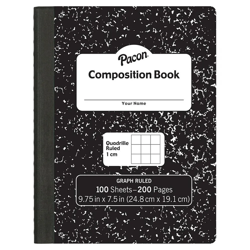 This Hard Cover one-subject composition book is great for drawing graphs, illustrations and more during note taking and journaling. Each sheet is 1 cm quadrille/grid ruled on both sides. Each composition book measures 9.75″H x 7.5″W with 100 sheets and 200 pages. Recyclable. Sold as a pack of 6 books.