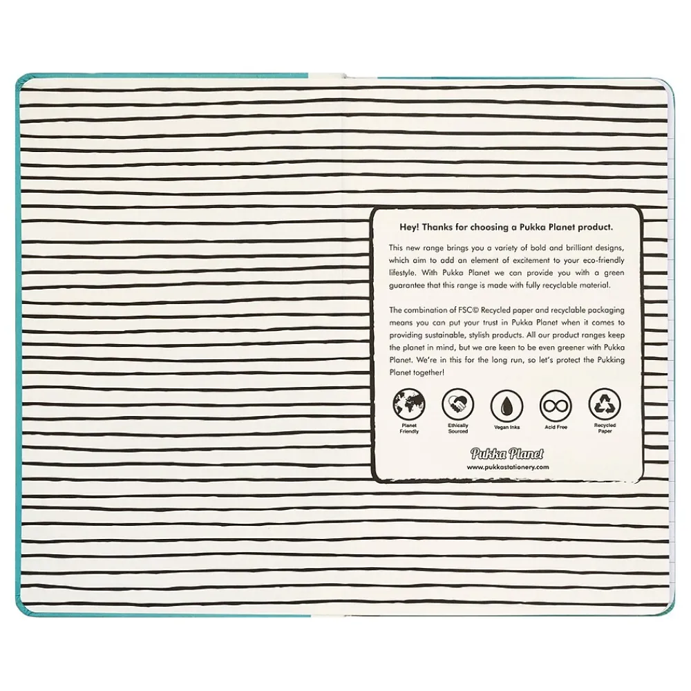Choose to make a change because there is no planet B! The Pukka Pad There Is No Planet B softcover notebook is perfect for people who want to make a statement about protecting the planet and aren’t afraid to be bold and daring. The softcover notebook is the perfect place to let your creative juices flow, whether it’s your new notebook for jotting down ideas on how you can protect the planet or a space to write anything that inspires you throughout the day. The notebook is compact, making it great for writing notes on your daily commute, coffee shop trips, or lectures. The notebook includes 192 pages of 8mm (0.31″) lined, 100% FSC recycled paper that is planet-friendly and ethically sourced. From the ink down to the glue and pages, the whole notebook is vegan-friendly and ready to be recycled after use.