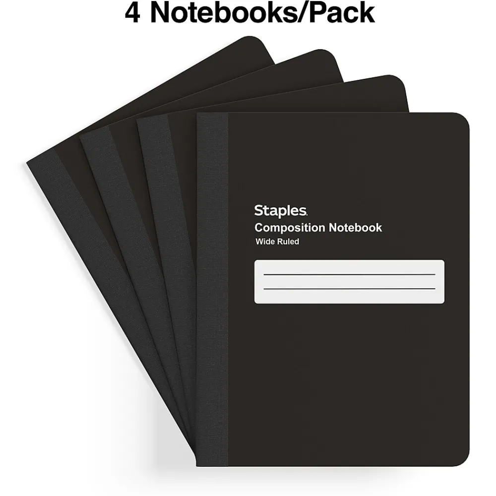 Composition Notebooks|Staples Composition Notebook, 7.5″ x 9.75″, Black, 4/Pack (TR58294)